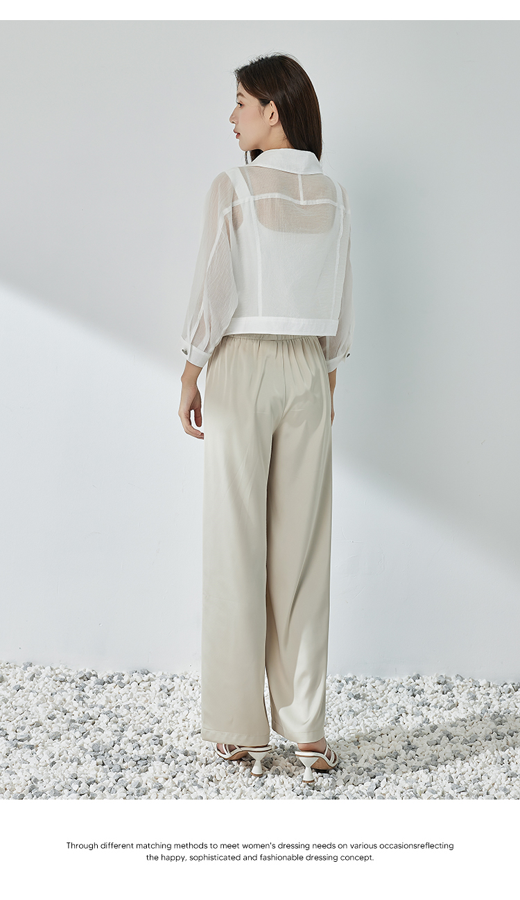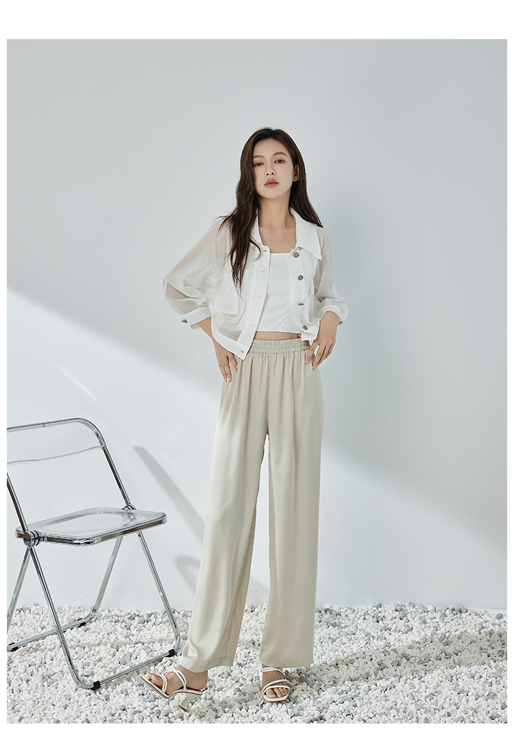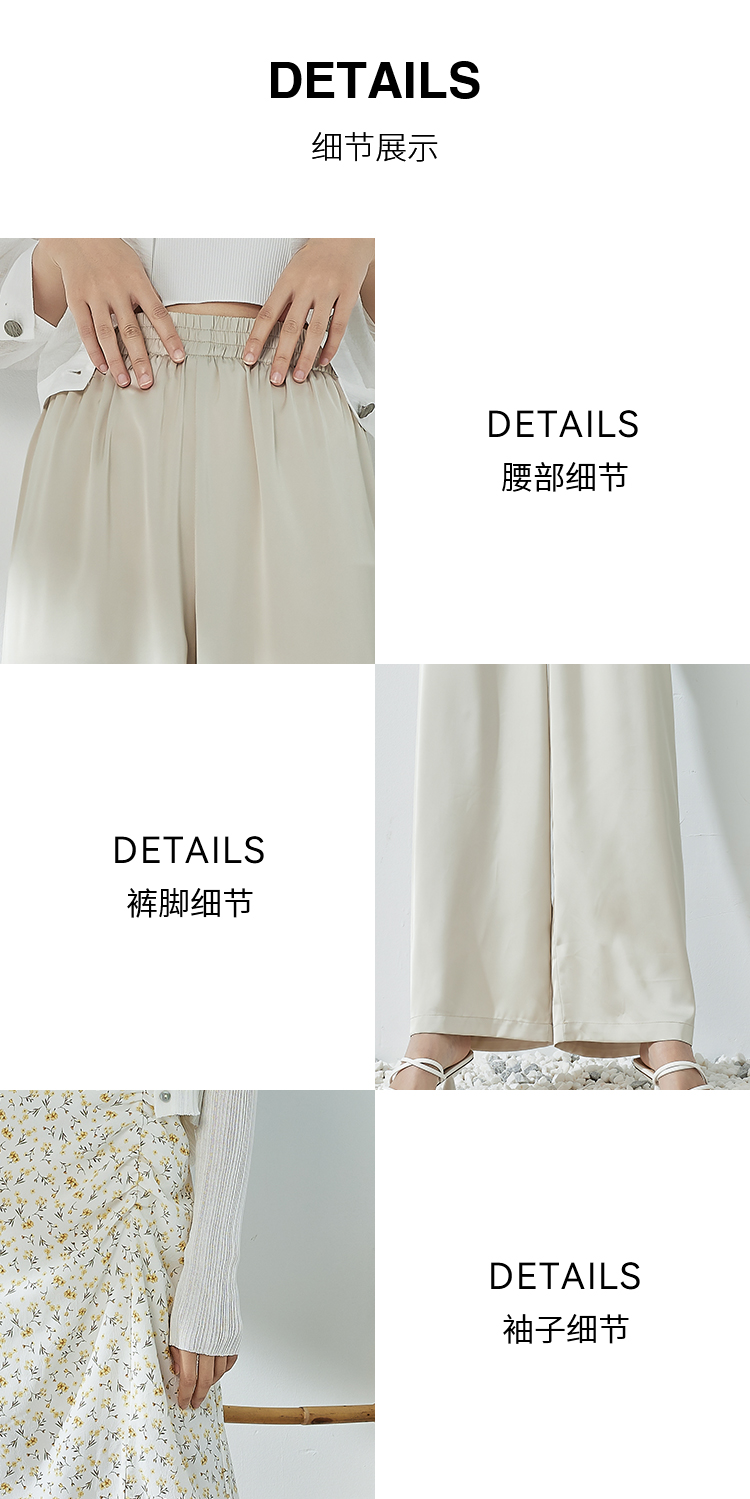 oldcolour欧珂夏季纯色抽绳弹力松紧腰休闲阔腿裤女P25073107
