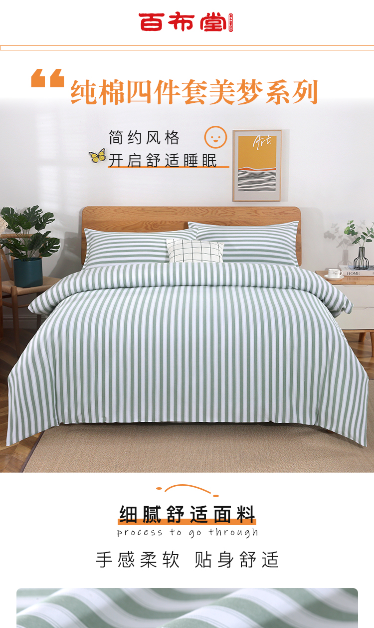 (乡村振兴商品)百布堂纯棉四件套美梦-绿条 商品图0