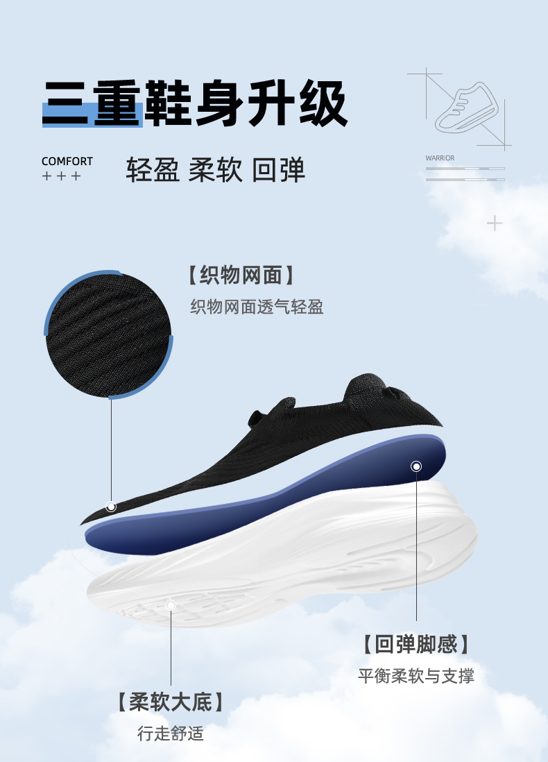 回力男鞋透气一脚蹬休闲运动鞋男款爸爸鞋子夏季轻便软底健步鞋WL(AB)-0789