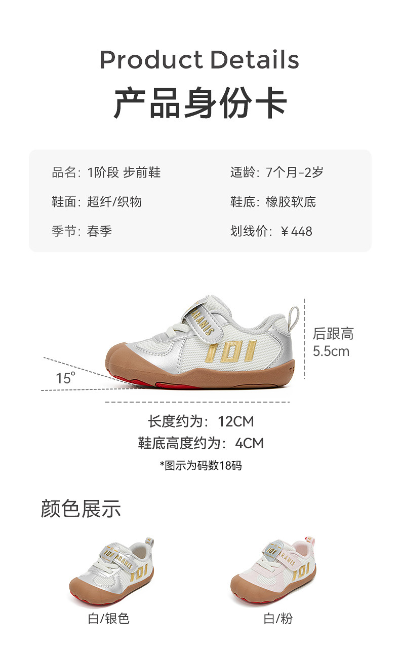 泰兰尼斯101春季新款宝宝鞋女童步前鞋婴幼儿男宝宝赤足鞋婴儿鞋 T24B6A8507