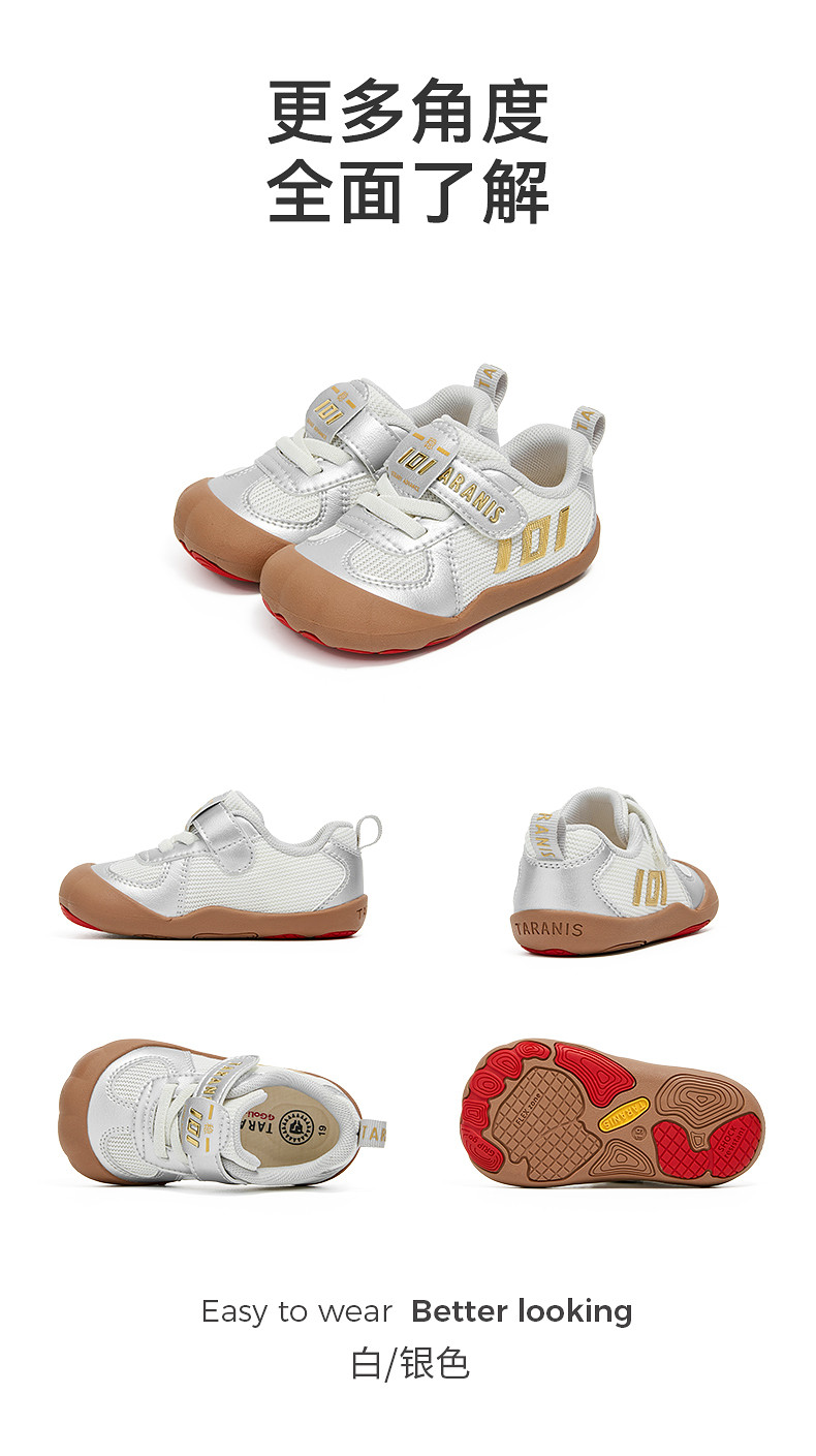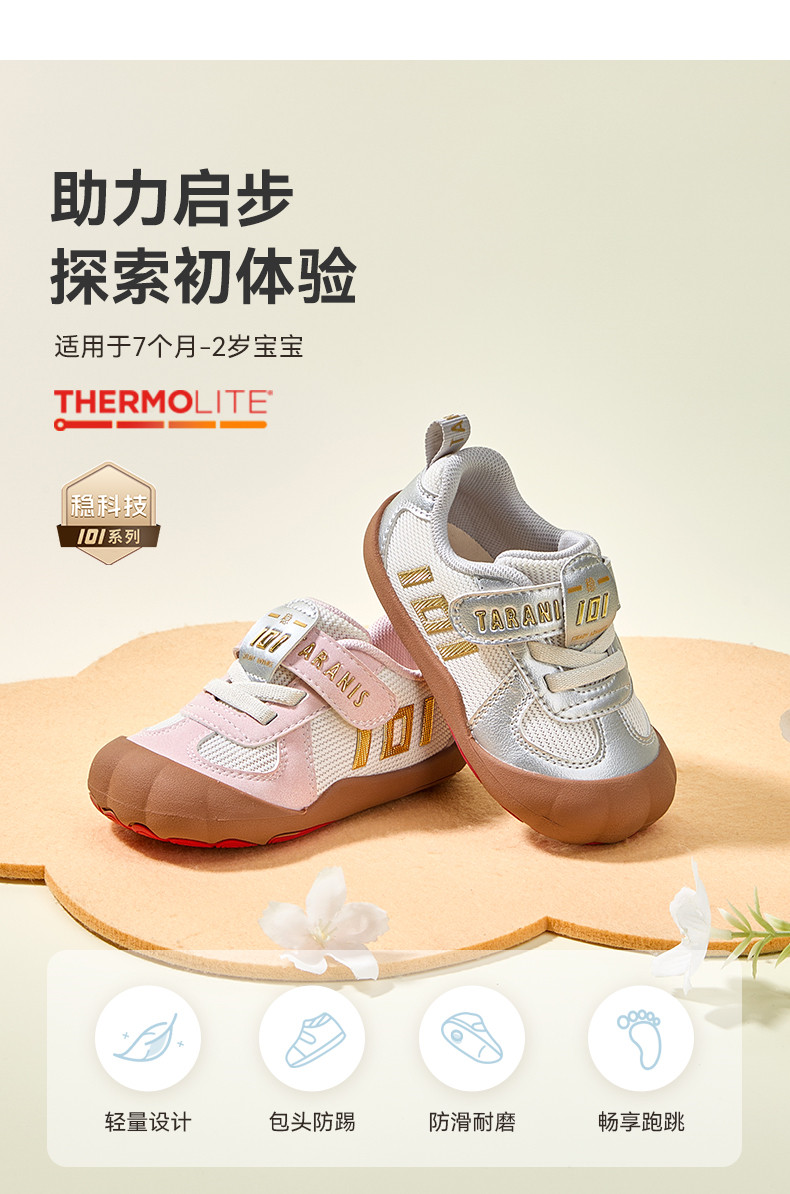 泰兰尼斯学步鞋男宝宝秋季新款童鞋软底鞋子女童机能鞋防滑面包鞋 T01T4C5607