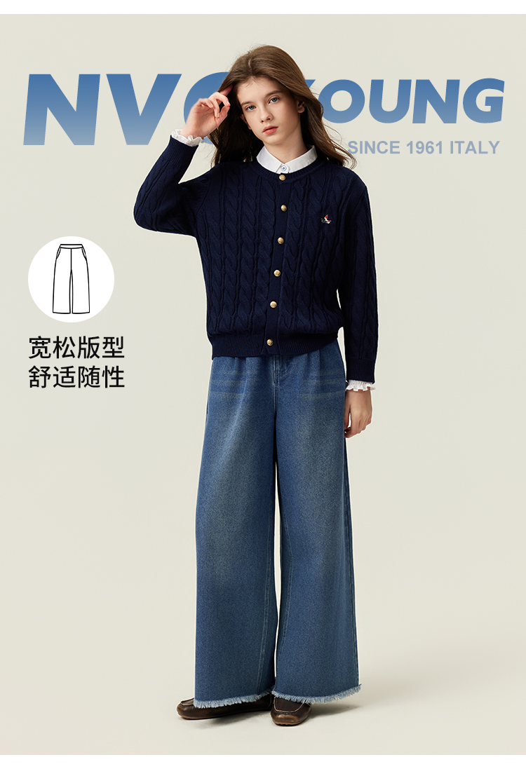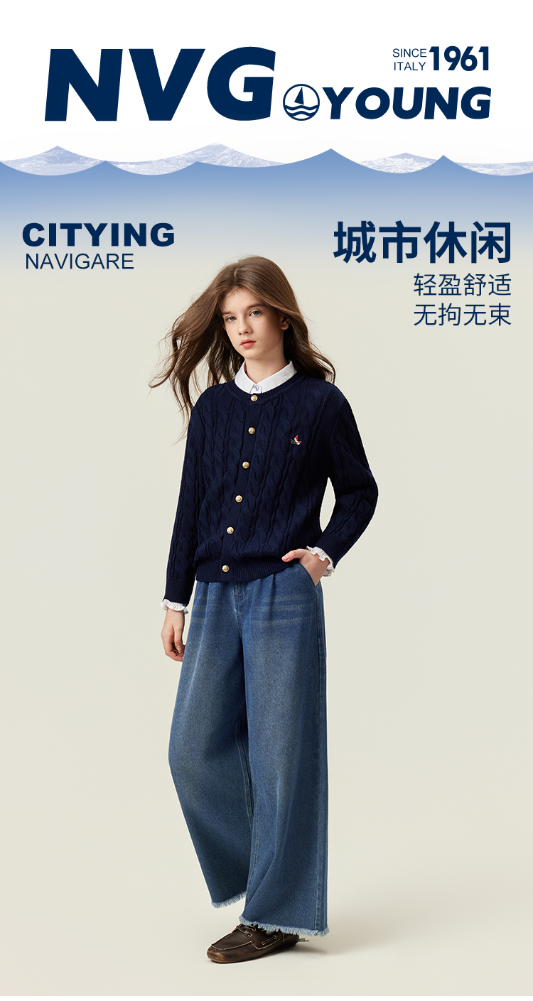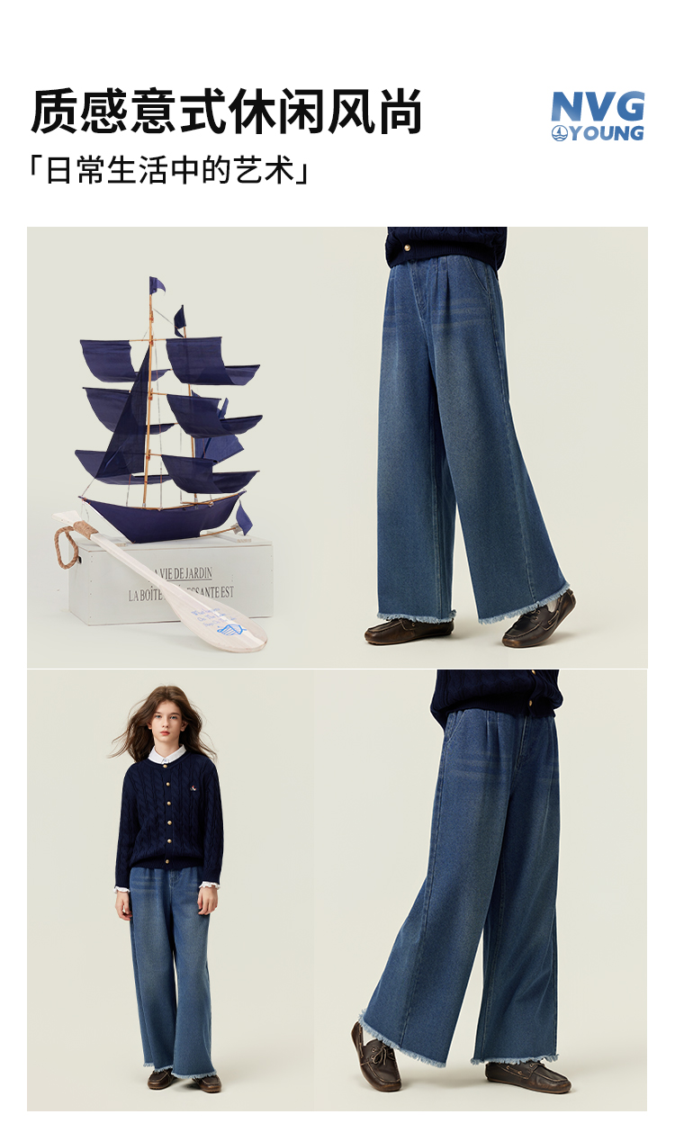 【纳维凯尔】【120-150】Navigare意大利小帆船女童春秋牛仔裤