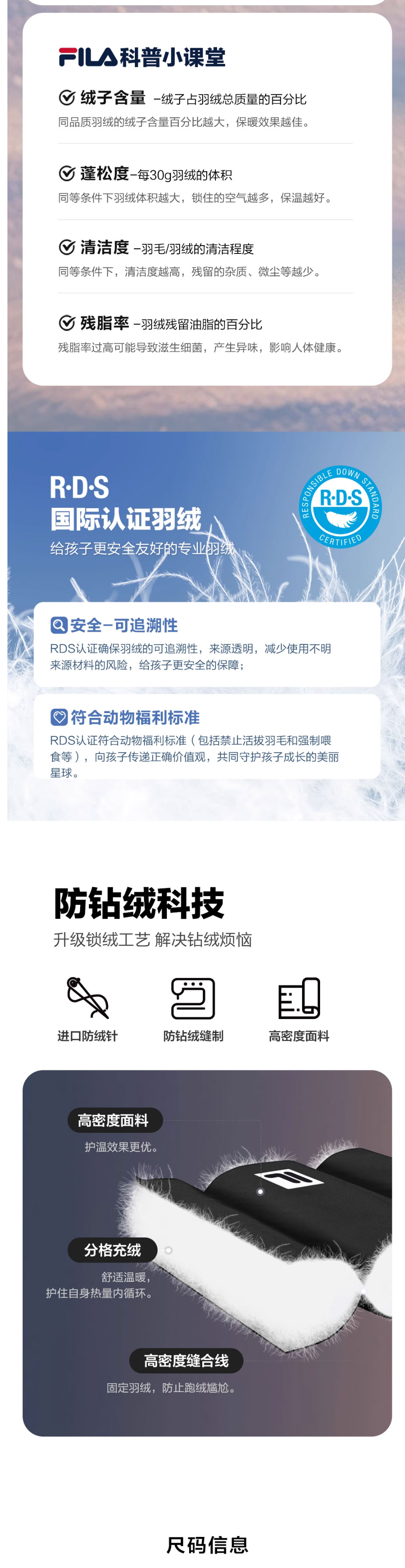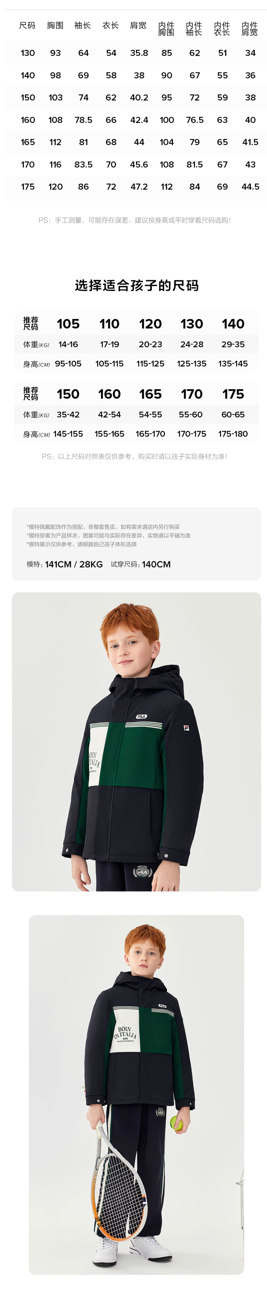 FILA KIDS斐乐童装男大童羽绒服2025冬新款K12B543923FNV