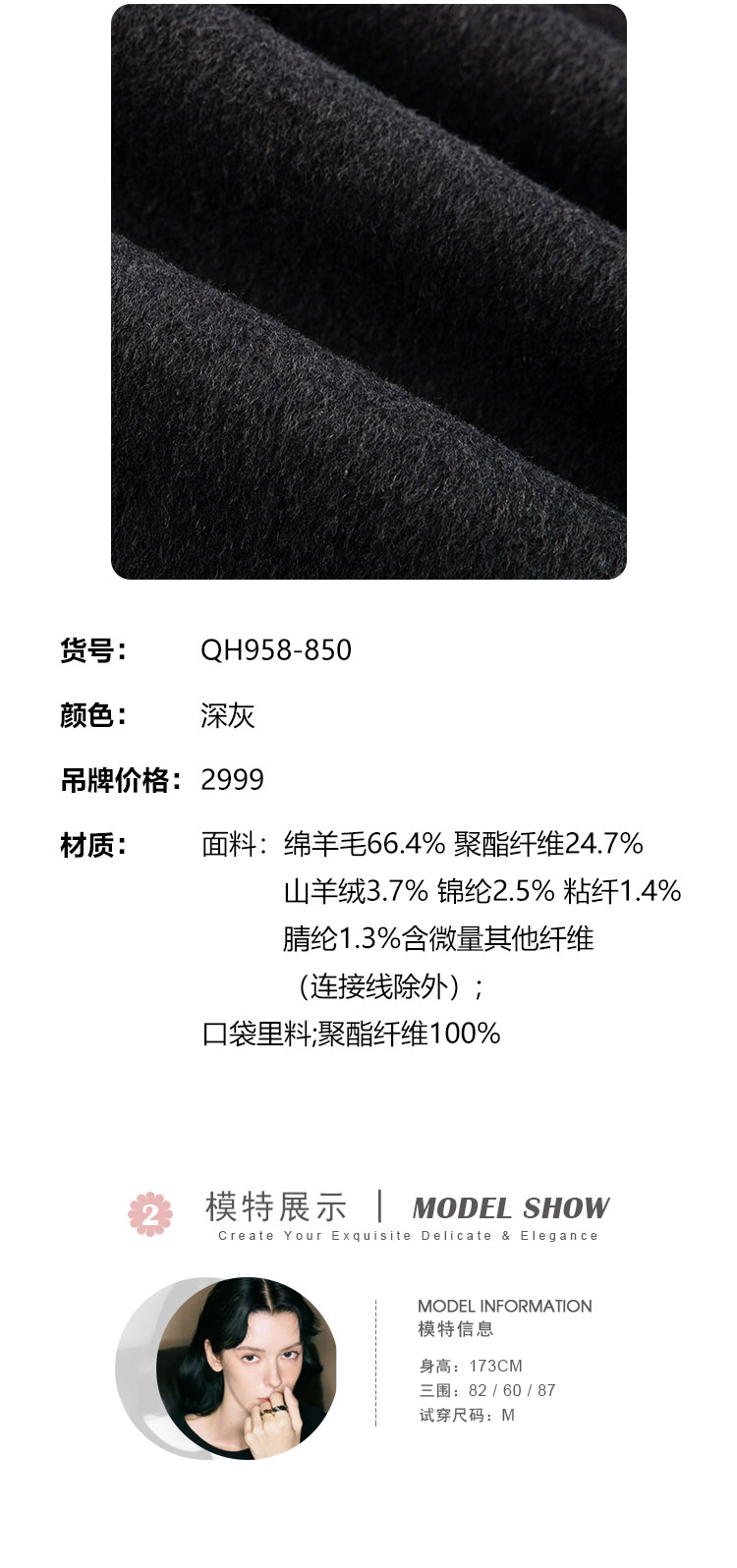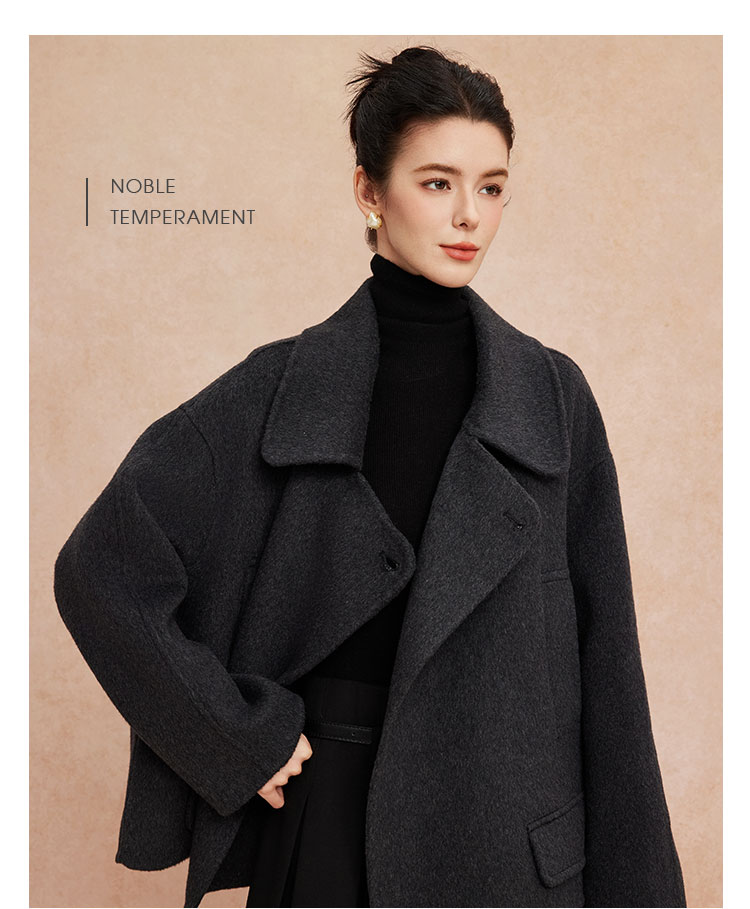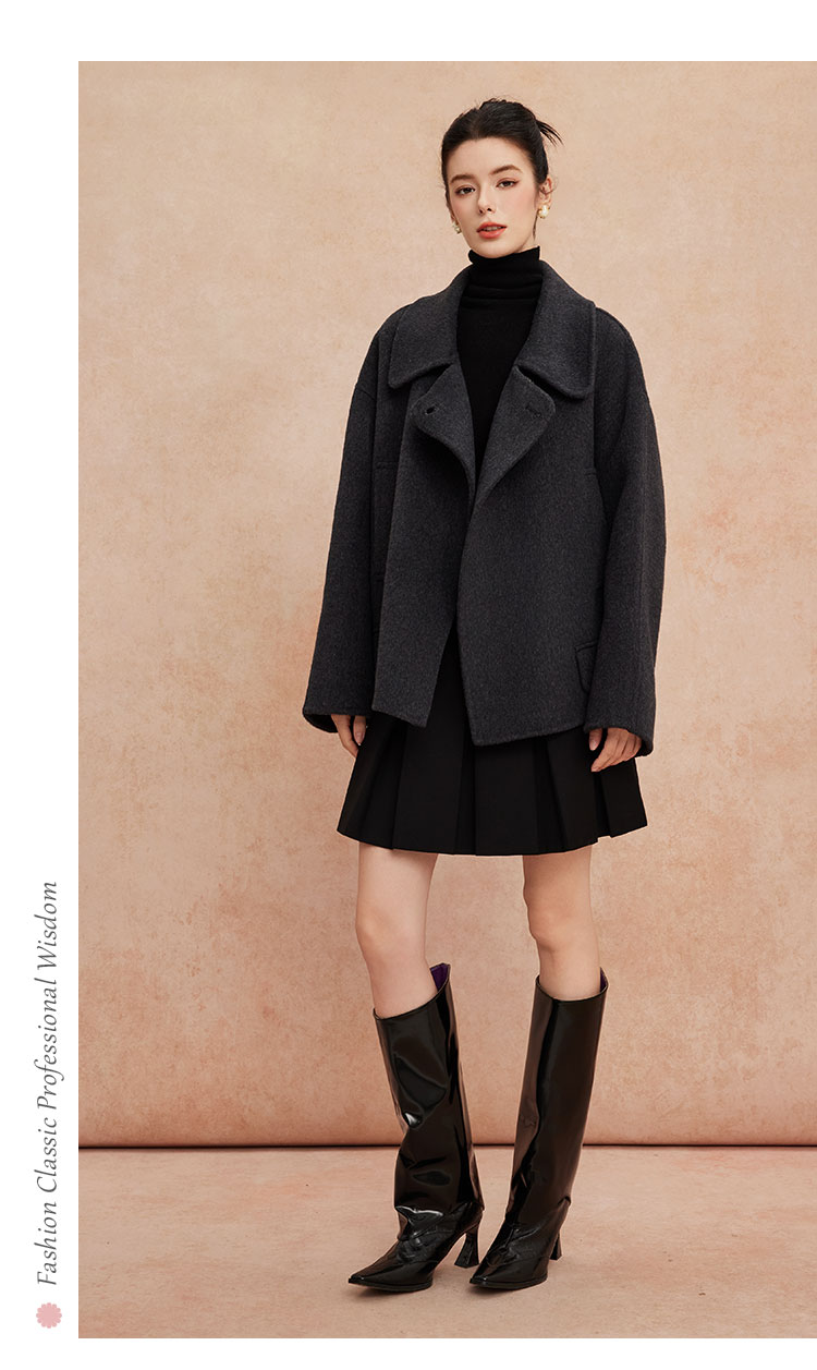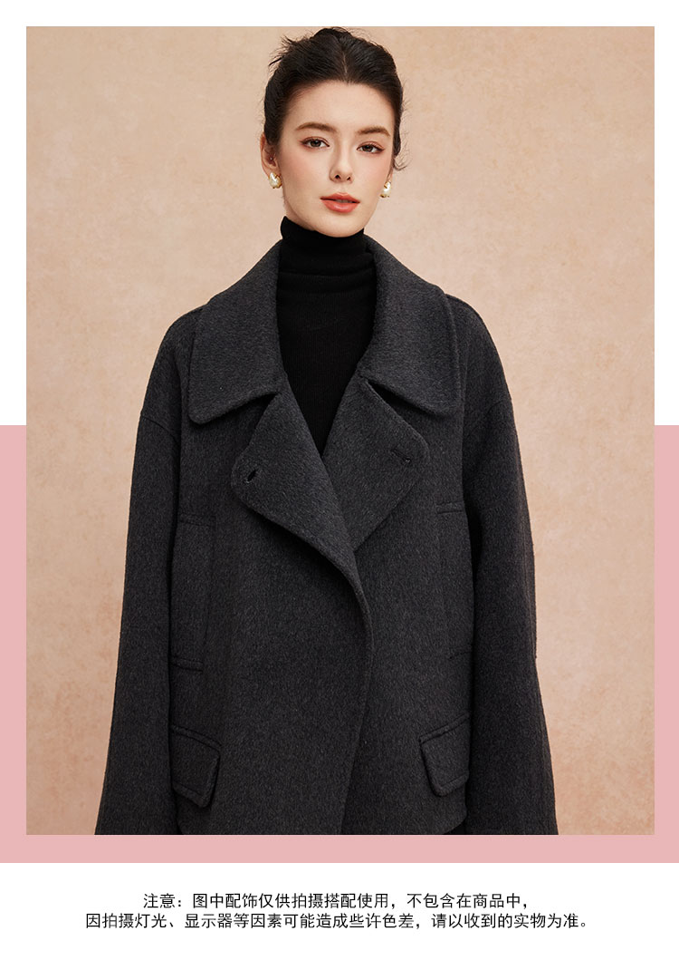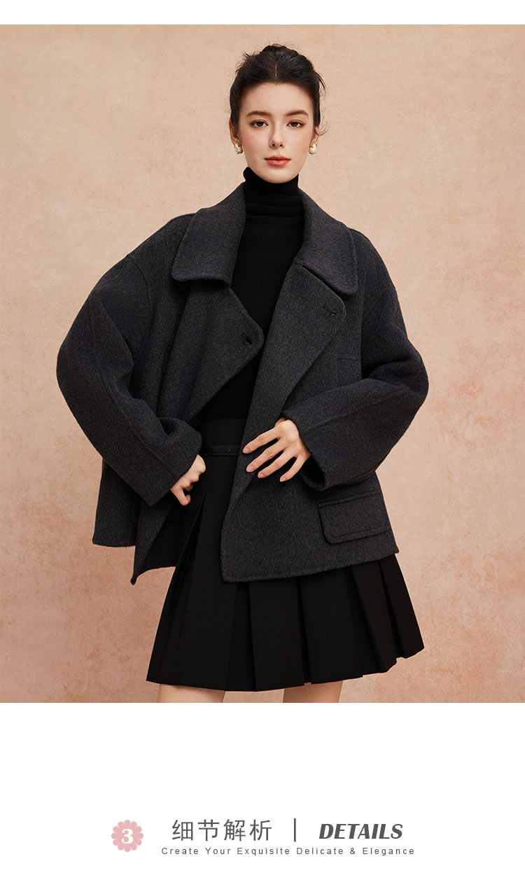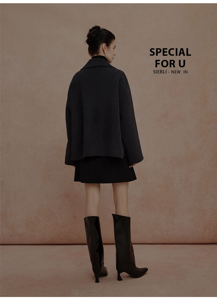 QH958斯尔丽25新款廓形显瘦设计韩版小个子时尚减龄手工双面短大衣