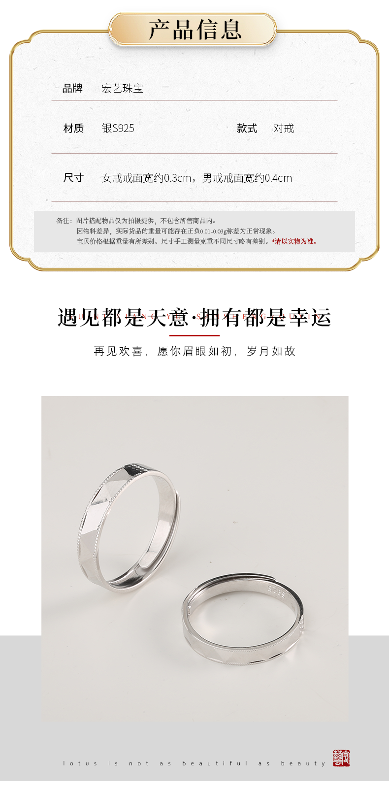 【宏艺珠宝】日月同辉情侣对戒·银s925戒指