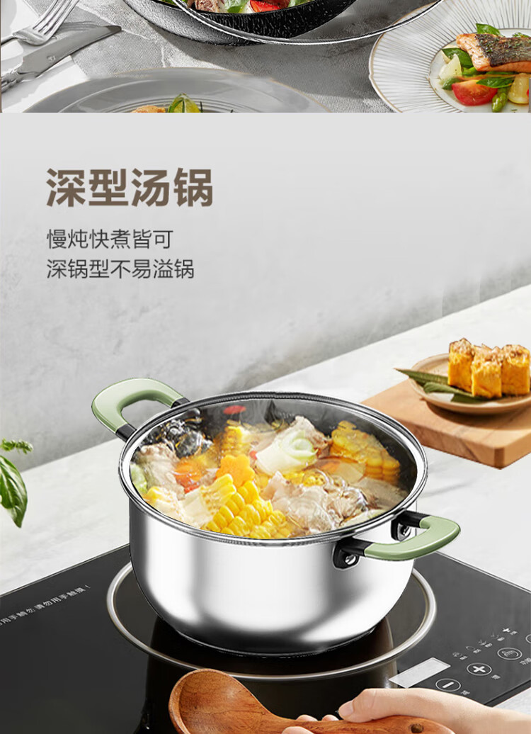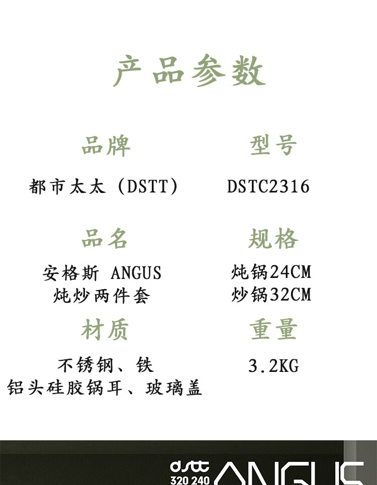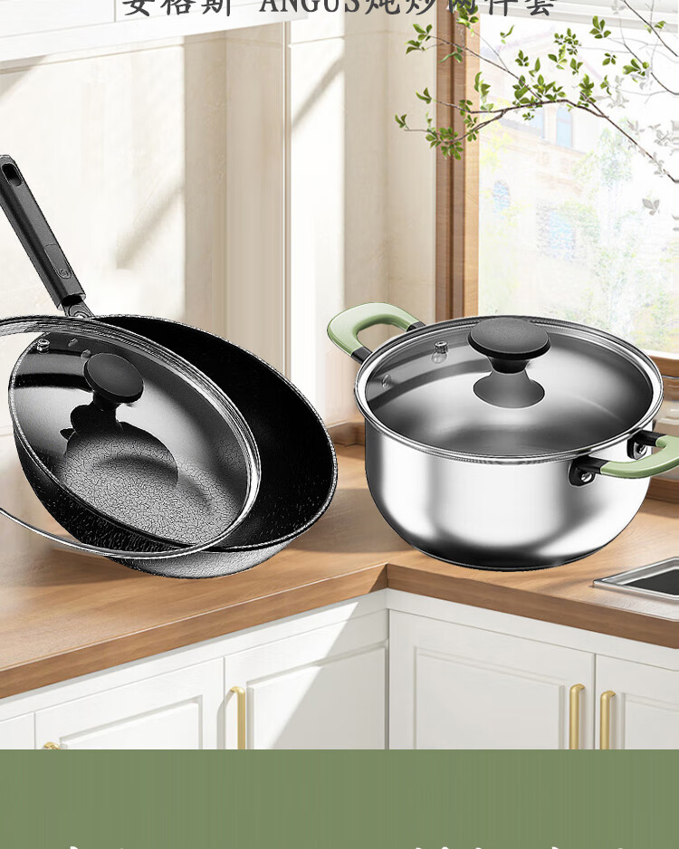 都市太太都市太太安格斯ANGUS炖炒两件套不锈钢炖锅炒锅燃气灶电磁炉通用