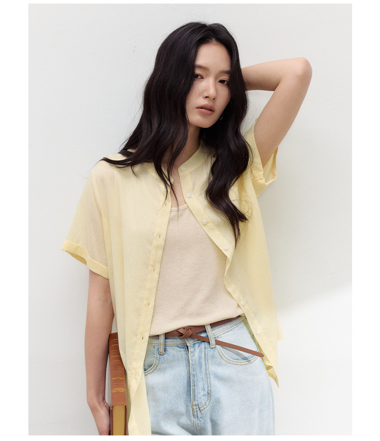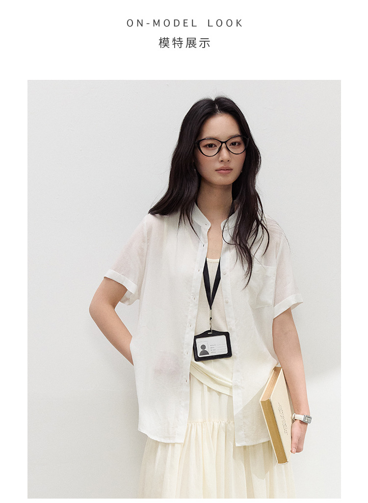 【15天内发出】春夏天丝亚麻短袖衬衫 简约百搭纽扣衬衣 高级感韩系休闲气质上衣
