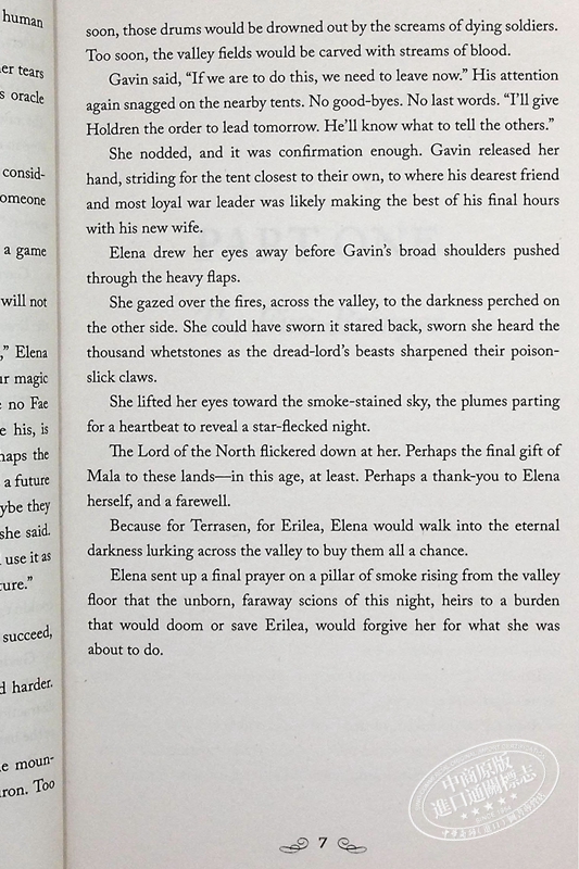 With her heart sworn to the warrior-prince by her side and her fealty pledged to the people she is determined to save, Aelin will delve into the depths of her power to protect those she loves. But as monsters emerge from the horrors of the past, dark forces stand poised to claim her world. The only chance for salvation lies in a desperate quest that may take more from Aelin than she has to give, a quest that forces her to choose what - and who -she's willing to sacrifice for the sake of peace.