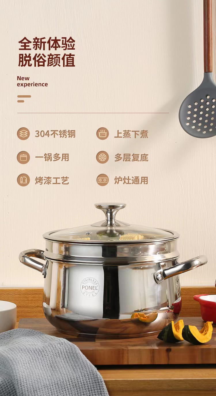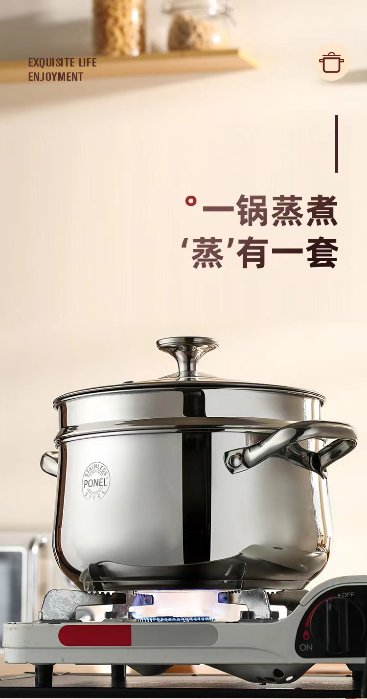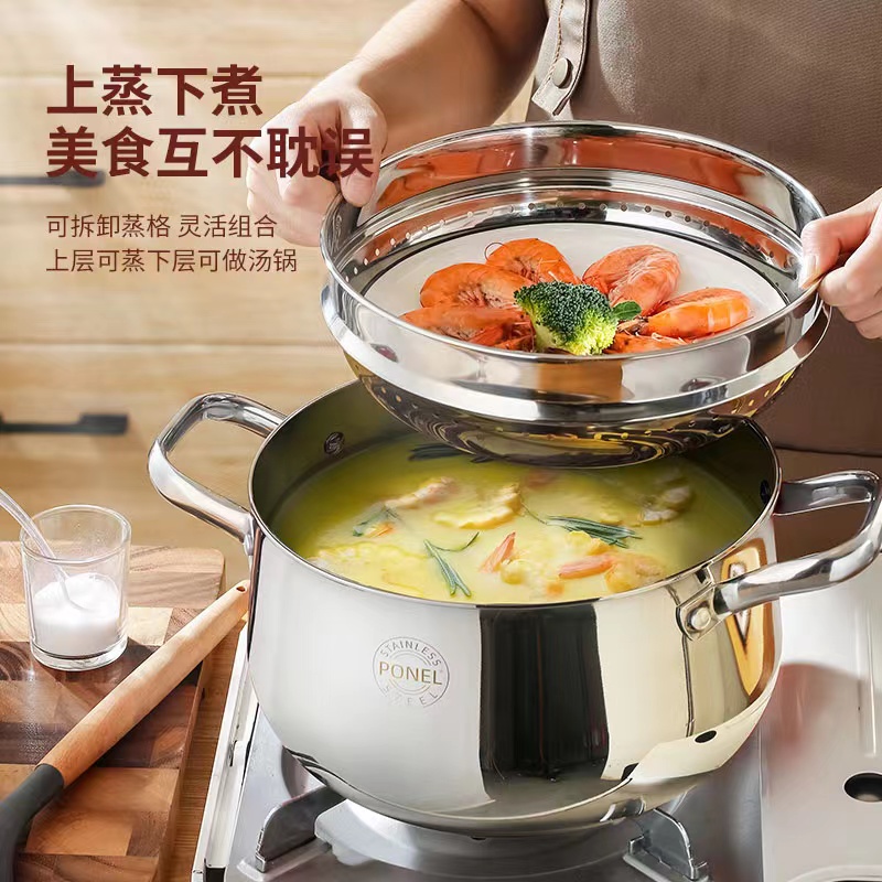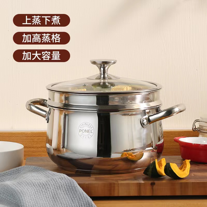 猫太推荐--- 难得好货!特价清仓仅需79💰22cm家用蒸锅带蒸格锅盖 【PONEL派能·304不锈钢贝贝汤蒸锅】