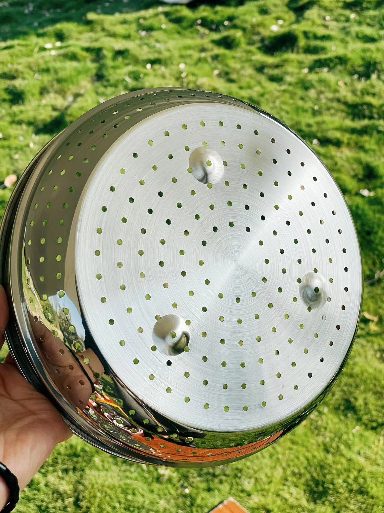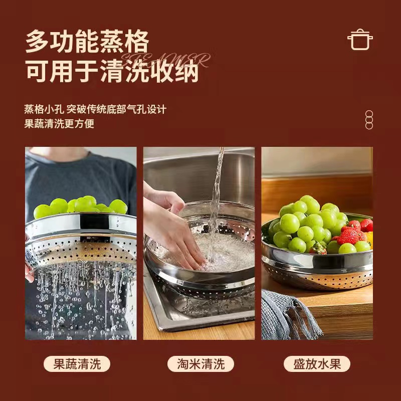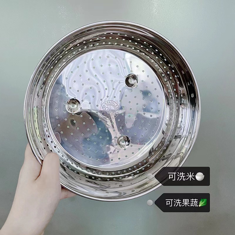 ✅配套的蒸格,它的孔眼较细,可以用来淘米洗菜洗水果