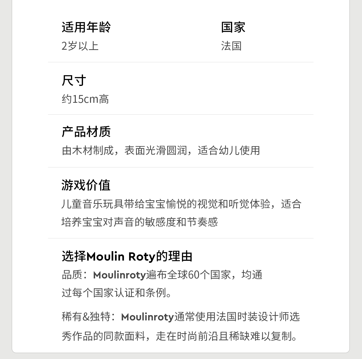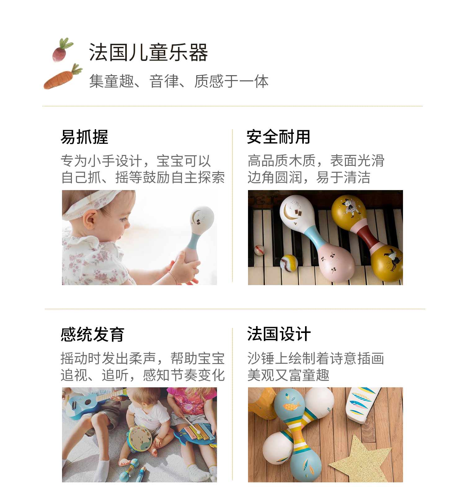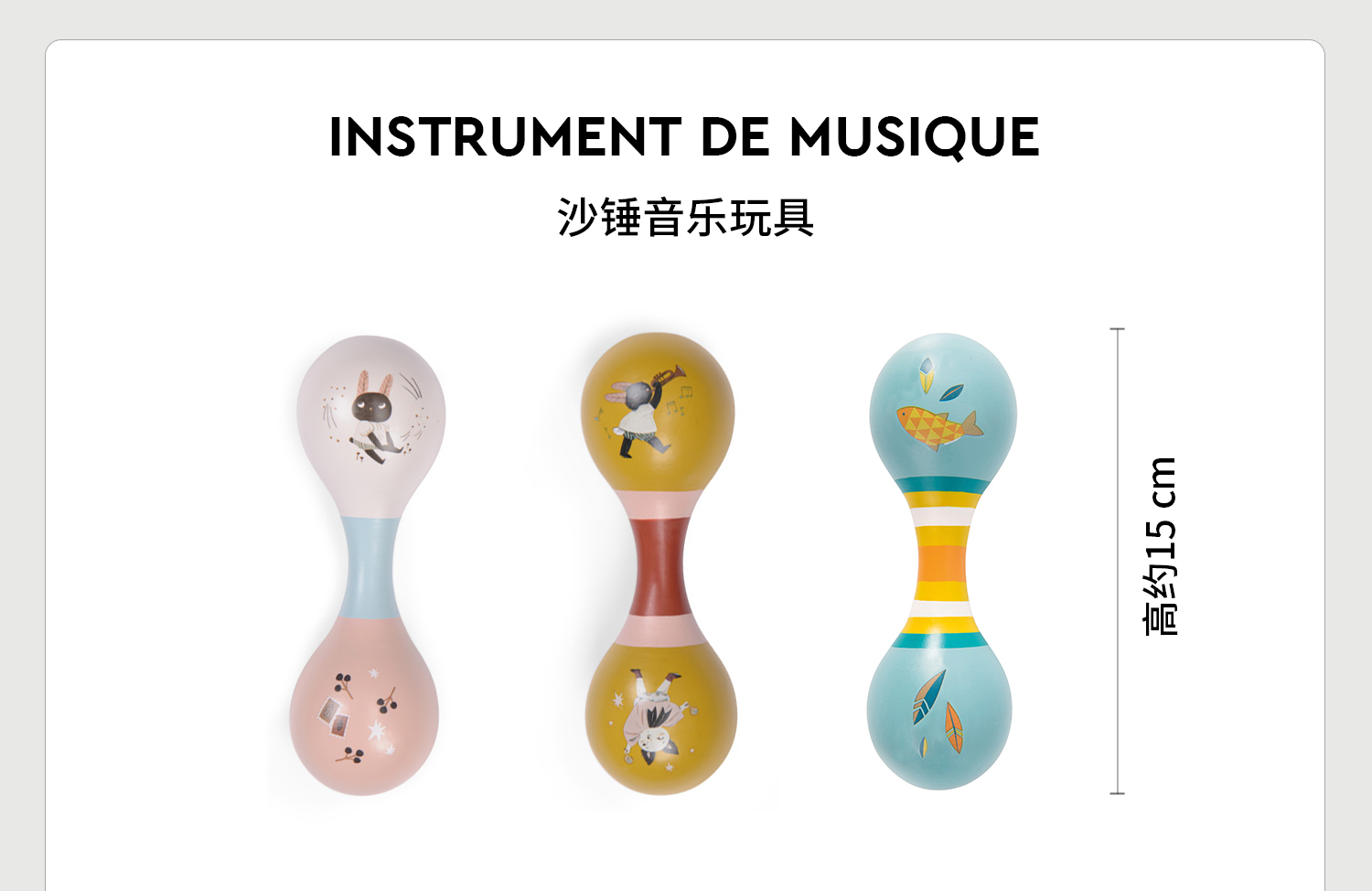 Moulin Roty 双头沙锤 奥尔加的旅行系列 音律启蒙 适合2岁+ 法国品牌 -714107