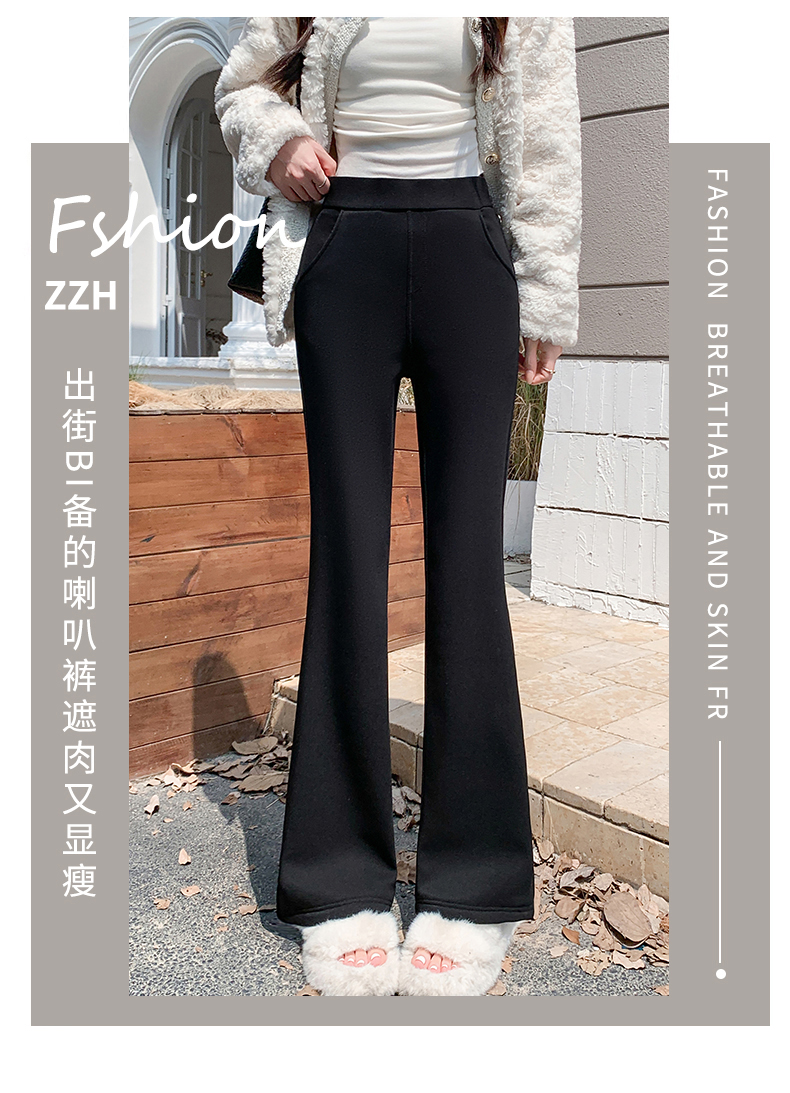 K.HIP 加绒锦纶珠弟微喇裤 修饰腿型,实力遮肉显瘦不臃肿;加厚奥粒绒,一条过冬;高腰收腹,黄金比例剪裁,视觉拉长比例