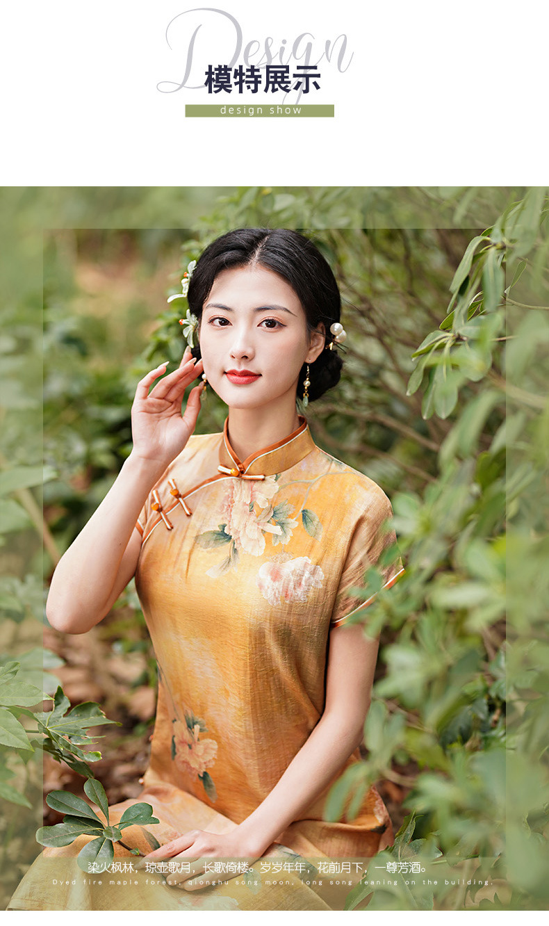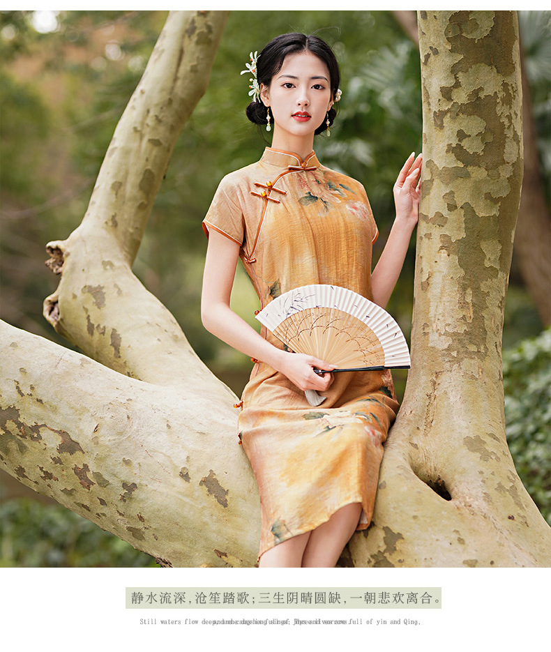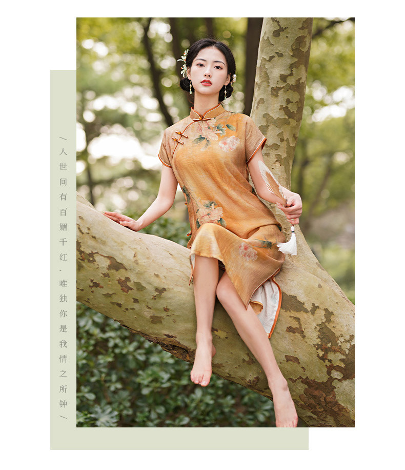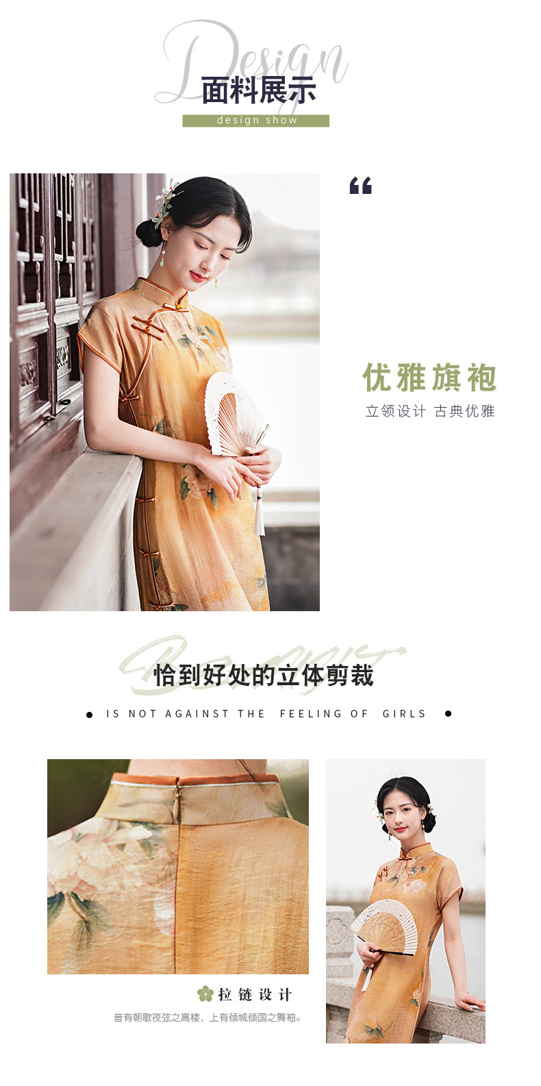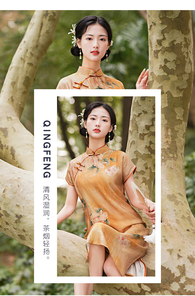 复古民国风,连肩袖日常新款天丝麻旗袍TX-853
