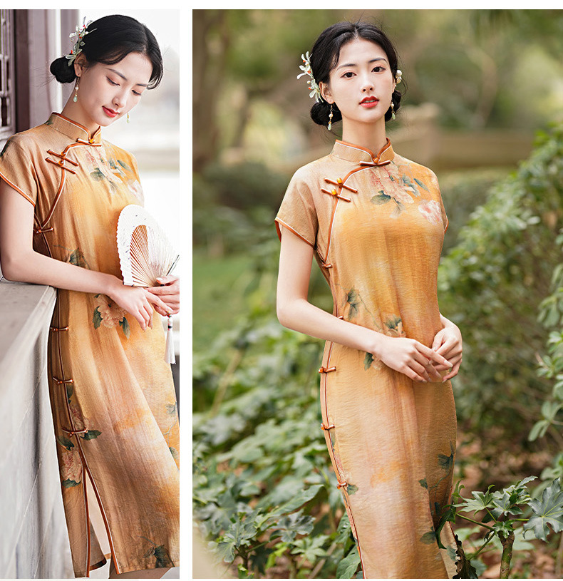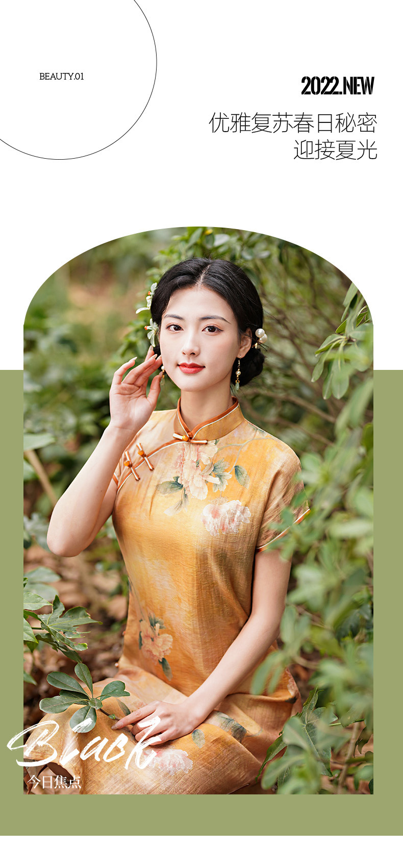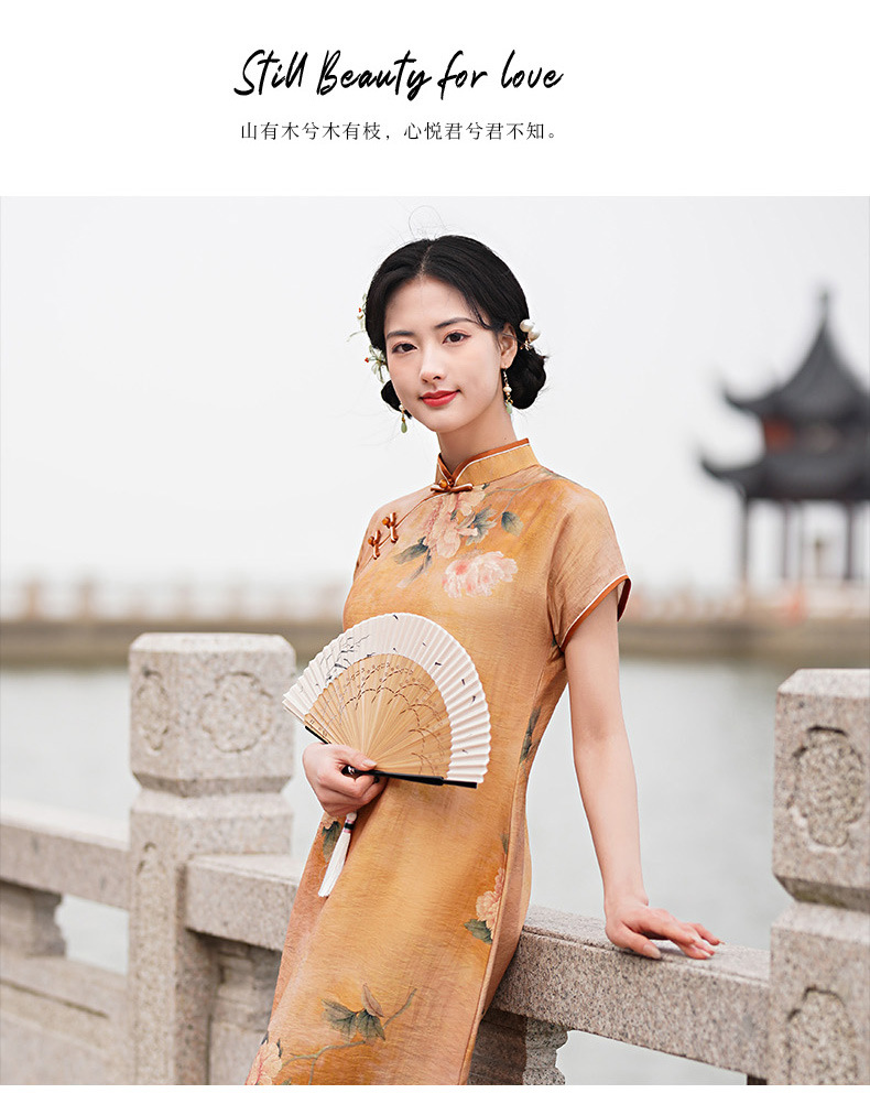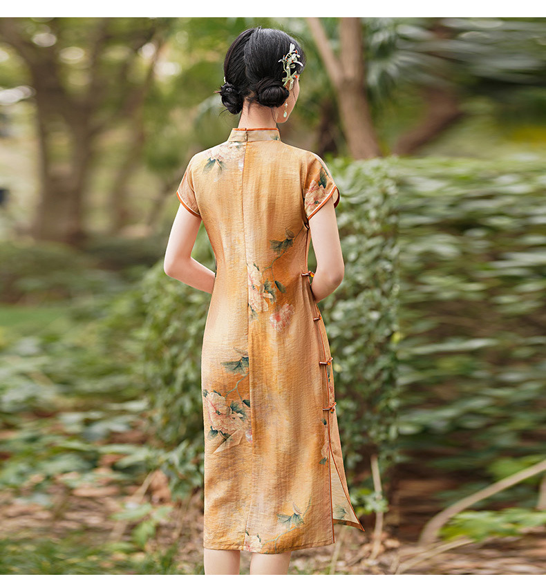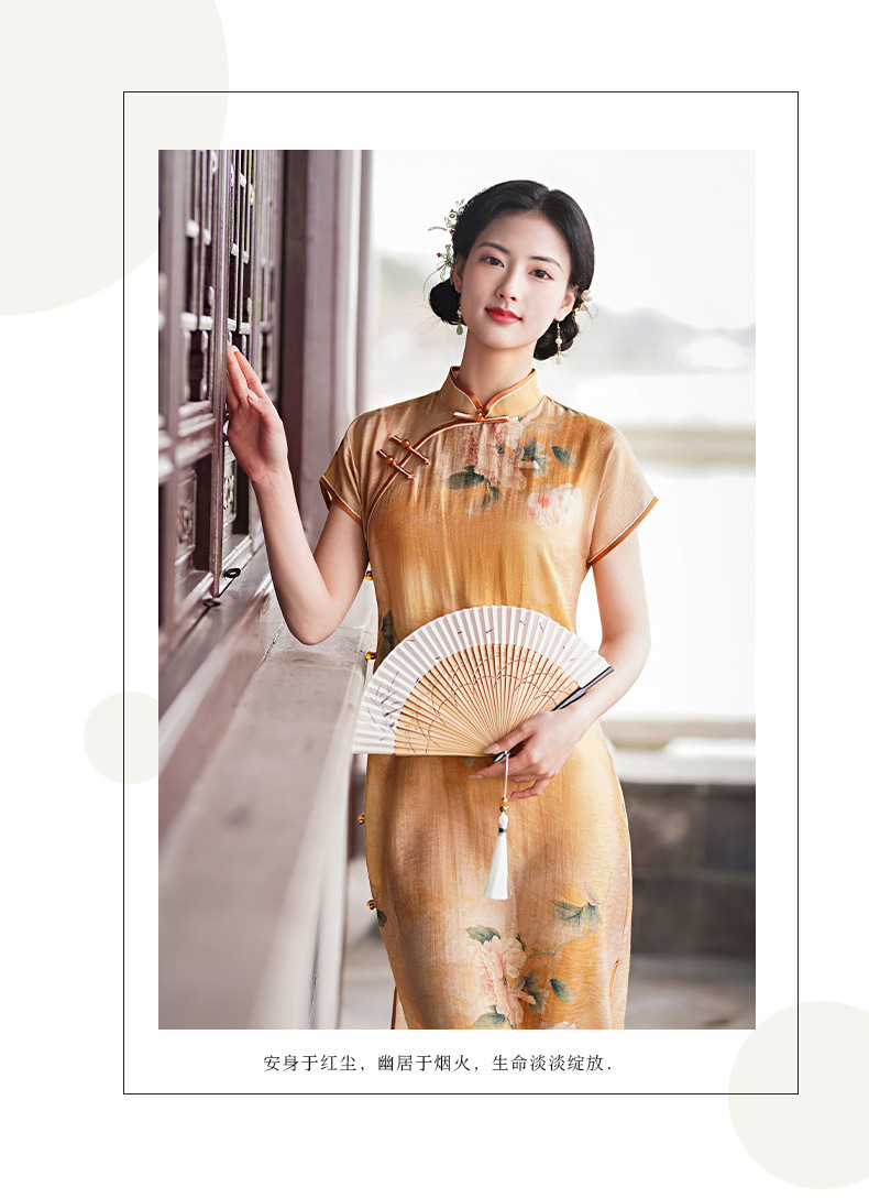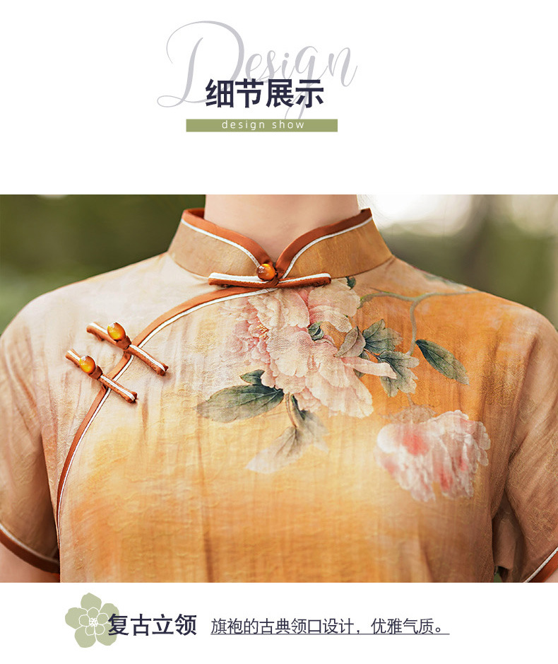 复古民国风,连肩袖日常新款天丝麻旗袍TX-853
