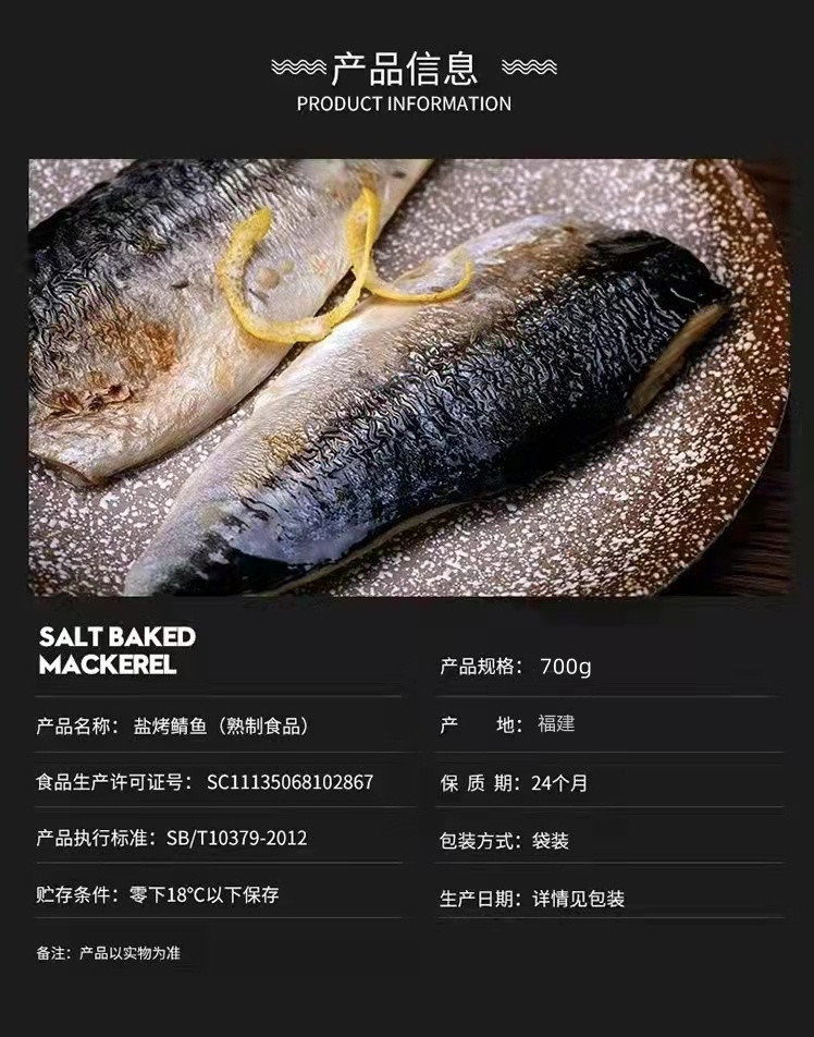 【鱼香多汁】念之味 盐烤鲭鱼 700g(约6-7条)