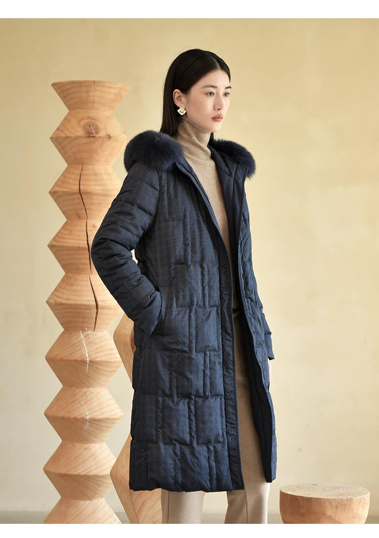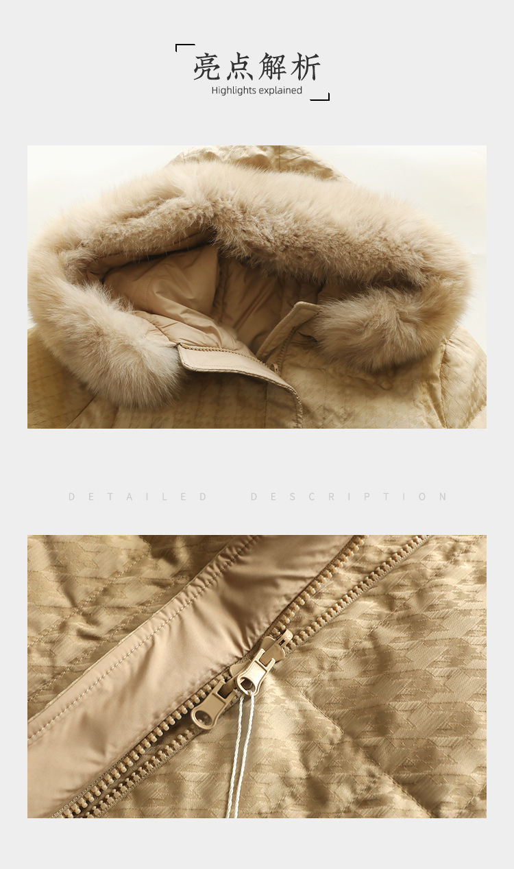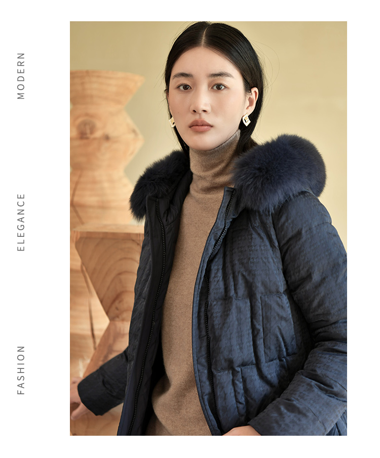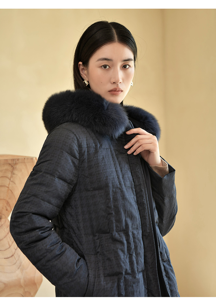 佐尔美冬季新款 气质保暖面包格狐毛领羽绒服女E24YH15