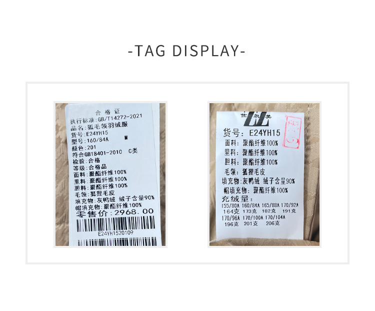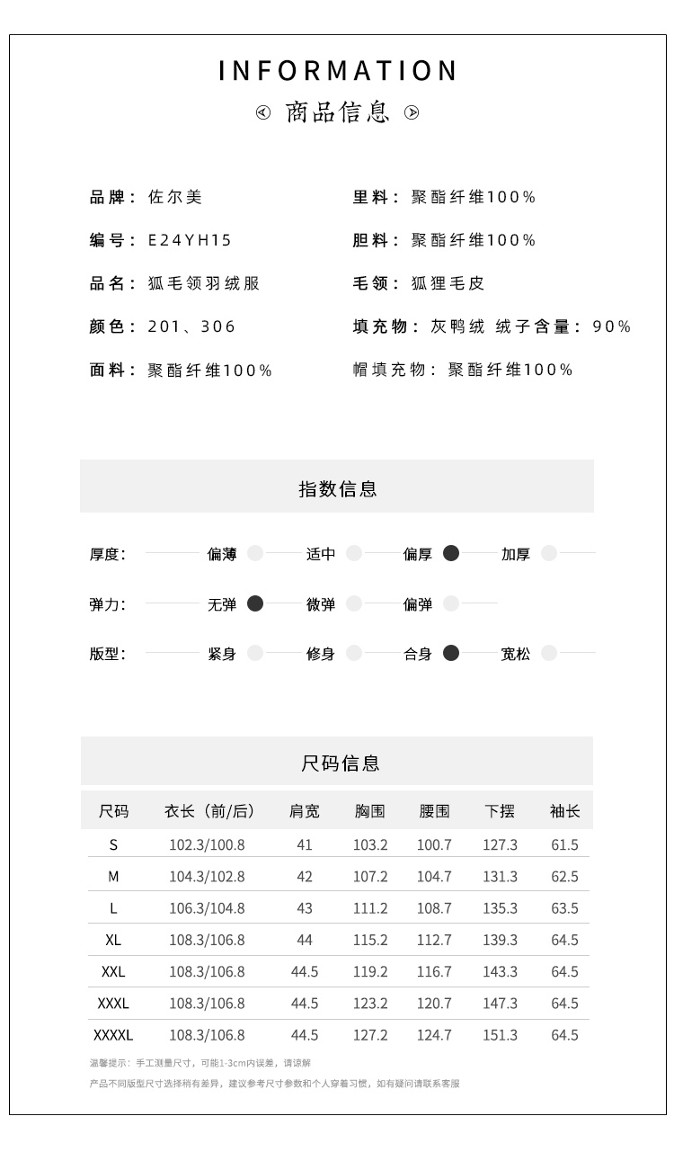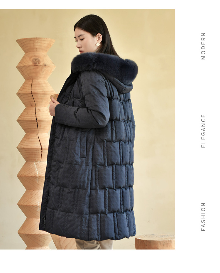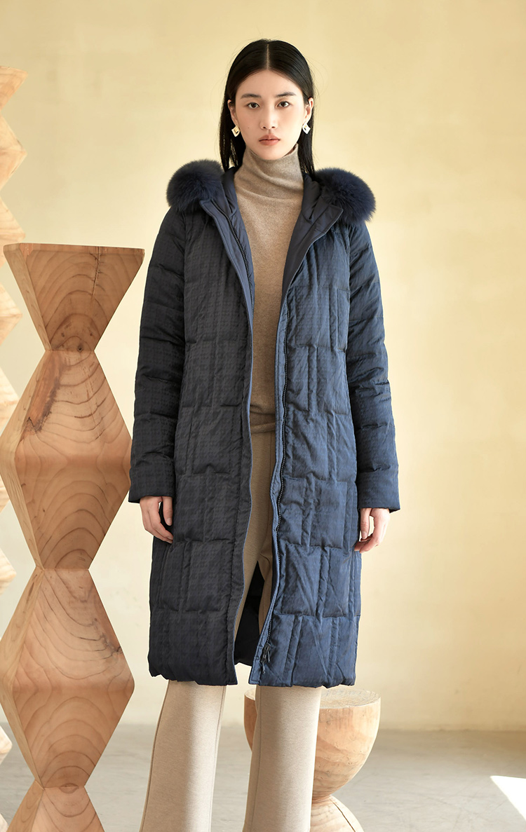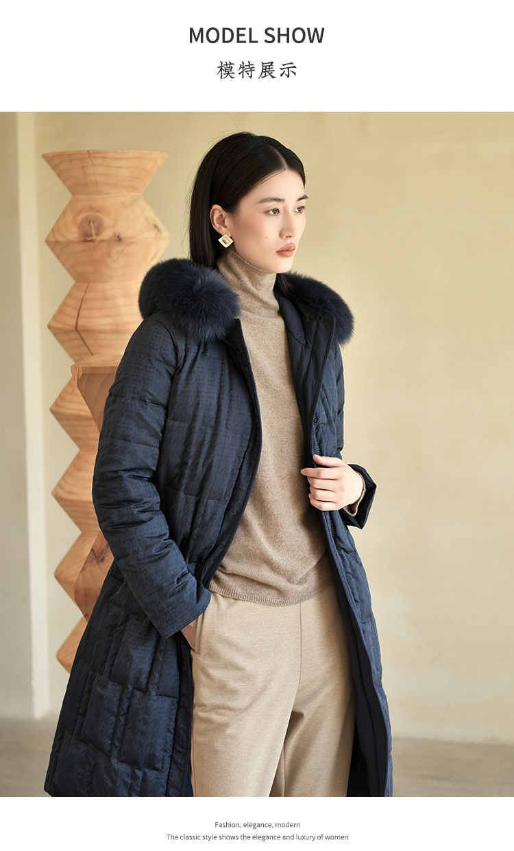 佐尔美冬季新款 气质保暖面包格狐毛领羽绒服女E24YH15