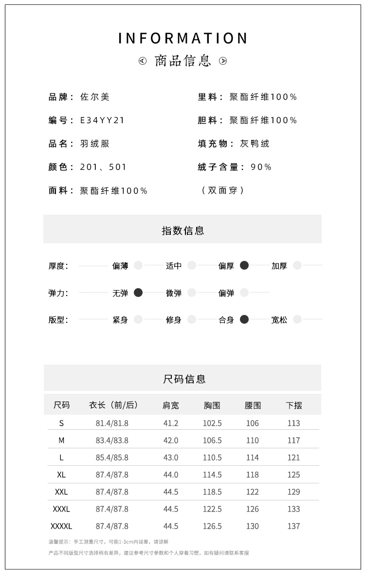 佐尔美冬季新款 气质百搭通勤双面穿羽绒服女E34YY21