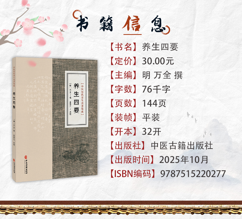 养生四要 中医历代养生名著集成 [明]万全 撰 金香兰 点校 八益丸 中医古籍 临床医学 书籍 9787515220277 中医古籍出版社