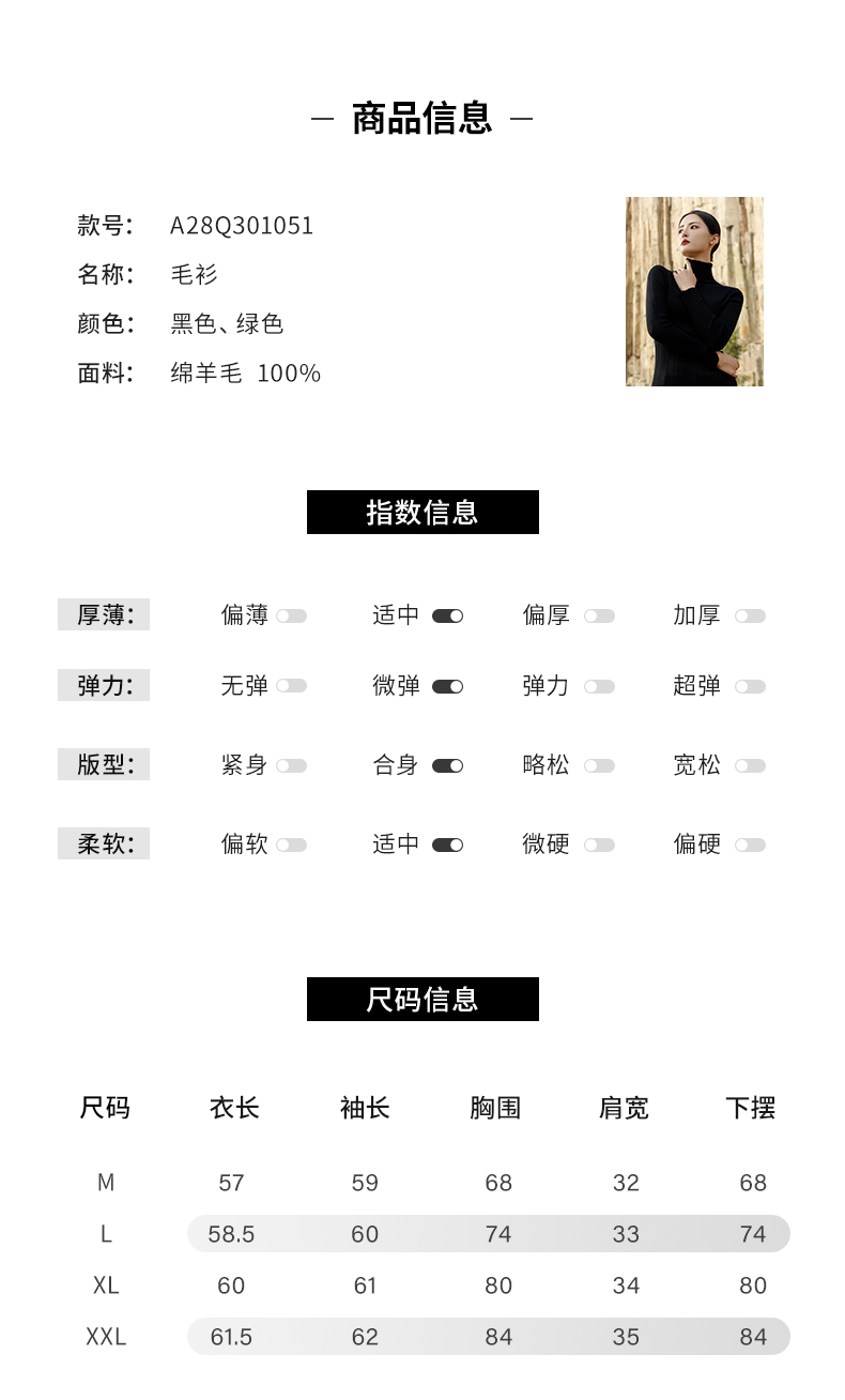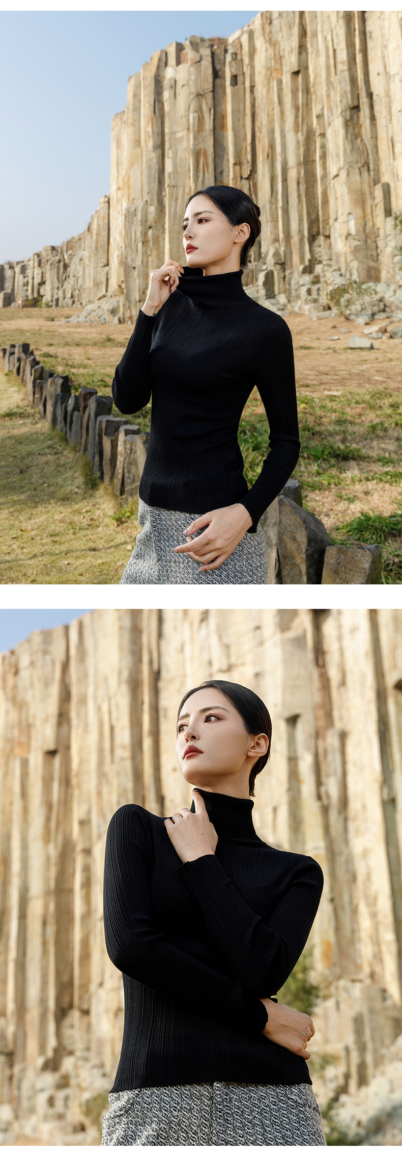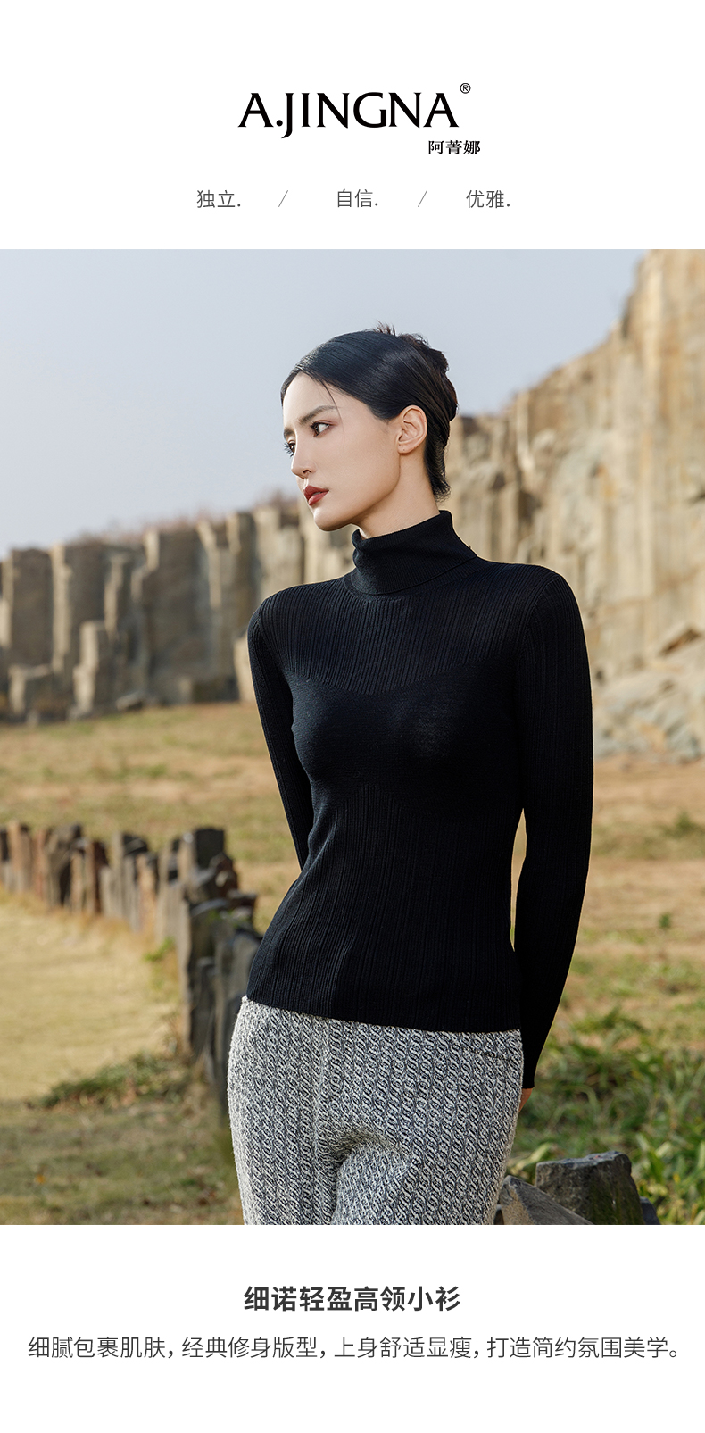 【积分兑换】阿菁娜冬季细诺纯羊毛轻盈修身高领小衫A28Q301051