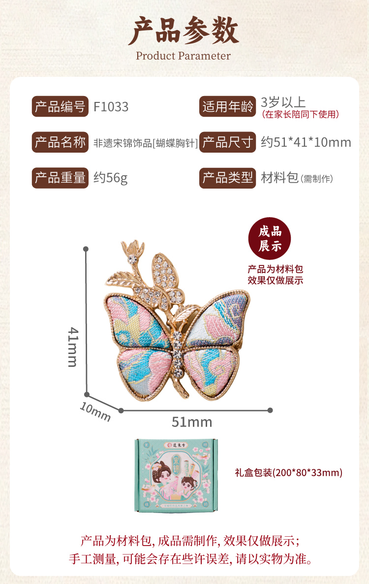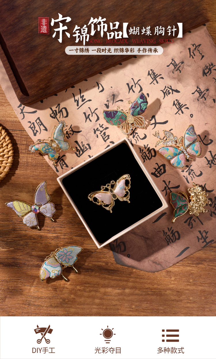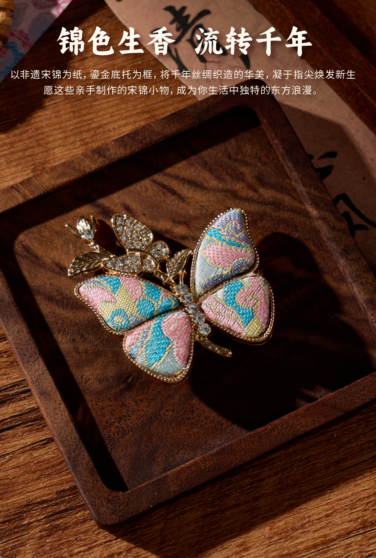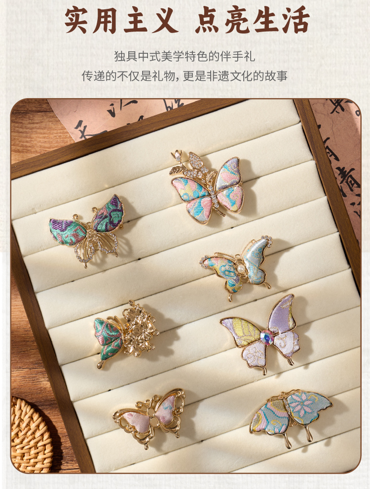 非遗宋锦蝴蝶胸针手工diy装饰新中式首饰品儿童材料暖场团建活动