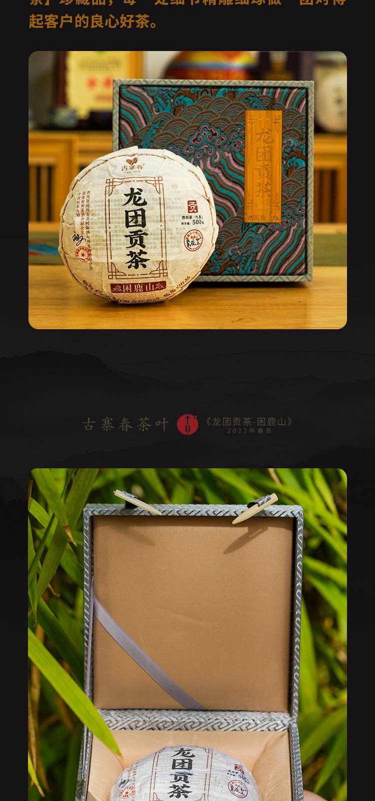 售罄困鹿山【龙团贡茶】2022年云南普洱茶生茶团茶礼盒装与茶农强强联合良心好茶500g/团