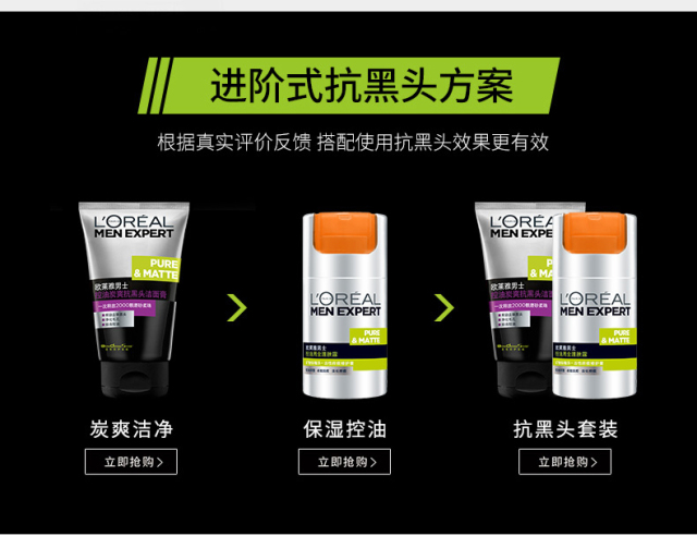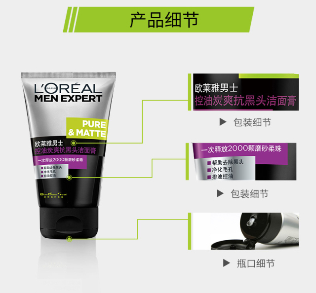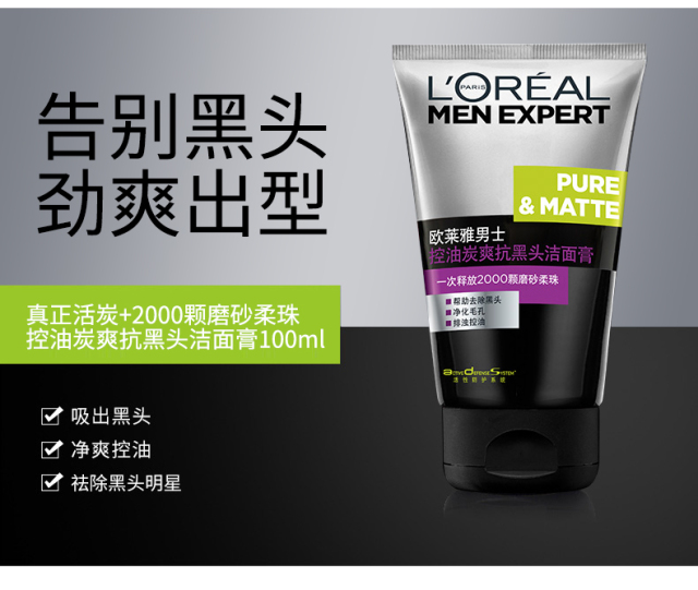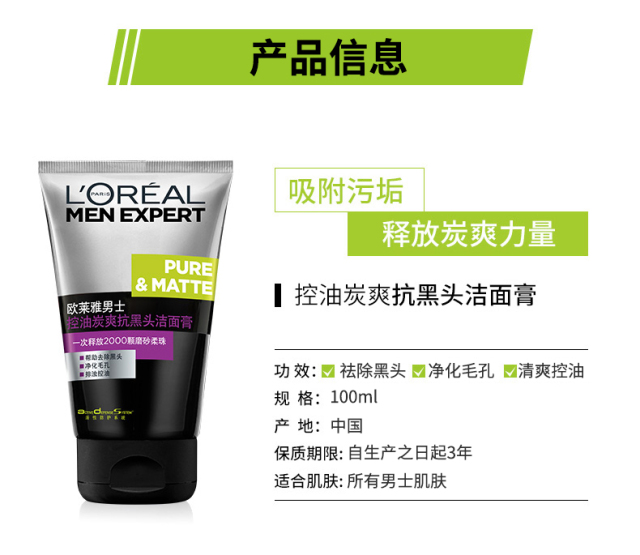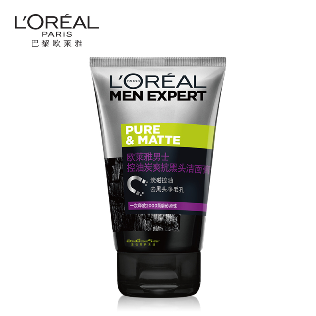 欧莱雅男士炭爽抗黑头洁面膏 100ml(4802015)