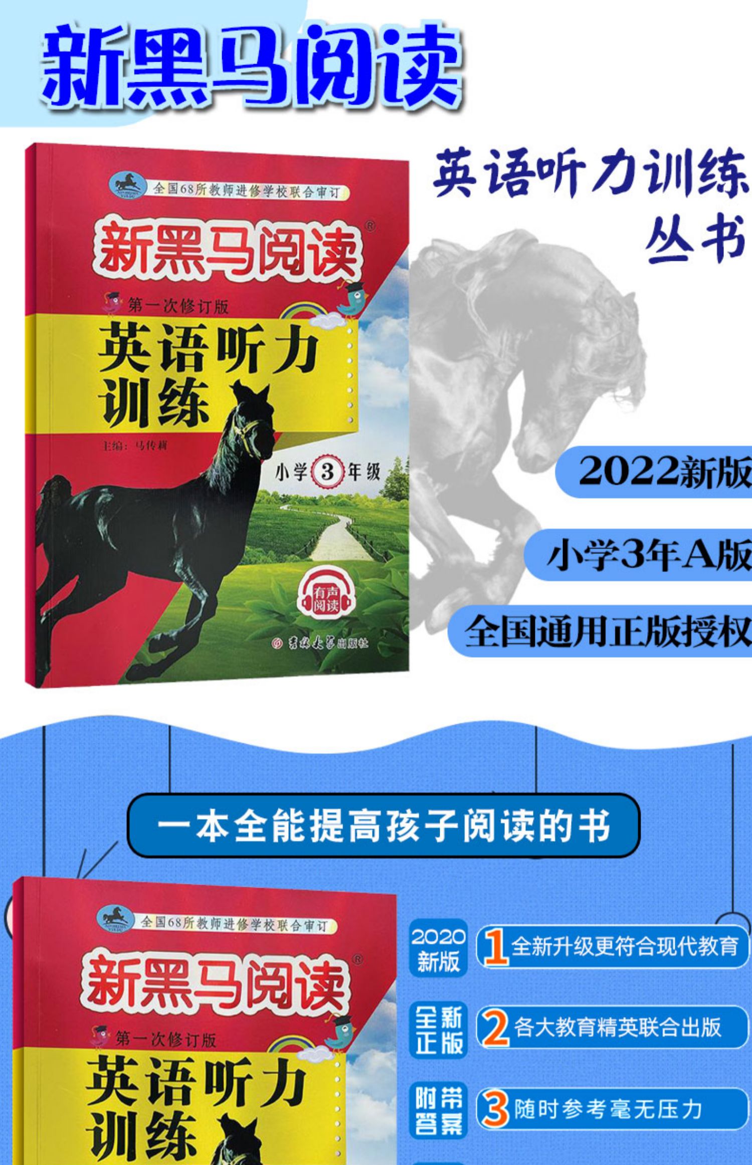 【有声阅读】2022新版新黑马阅读三年级英语听力训练小学生3年级上下册英语听力训练强化训练练习通用版听力能手学校老师推荐用书