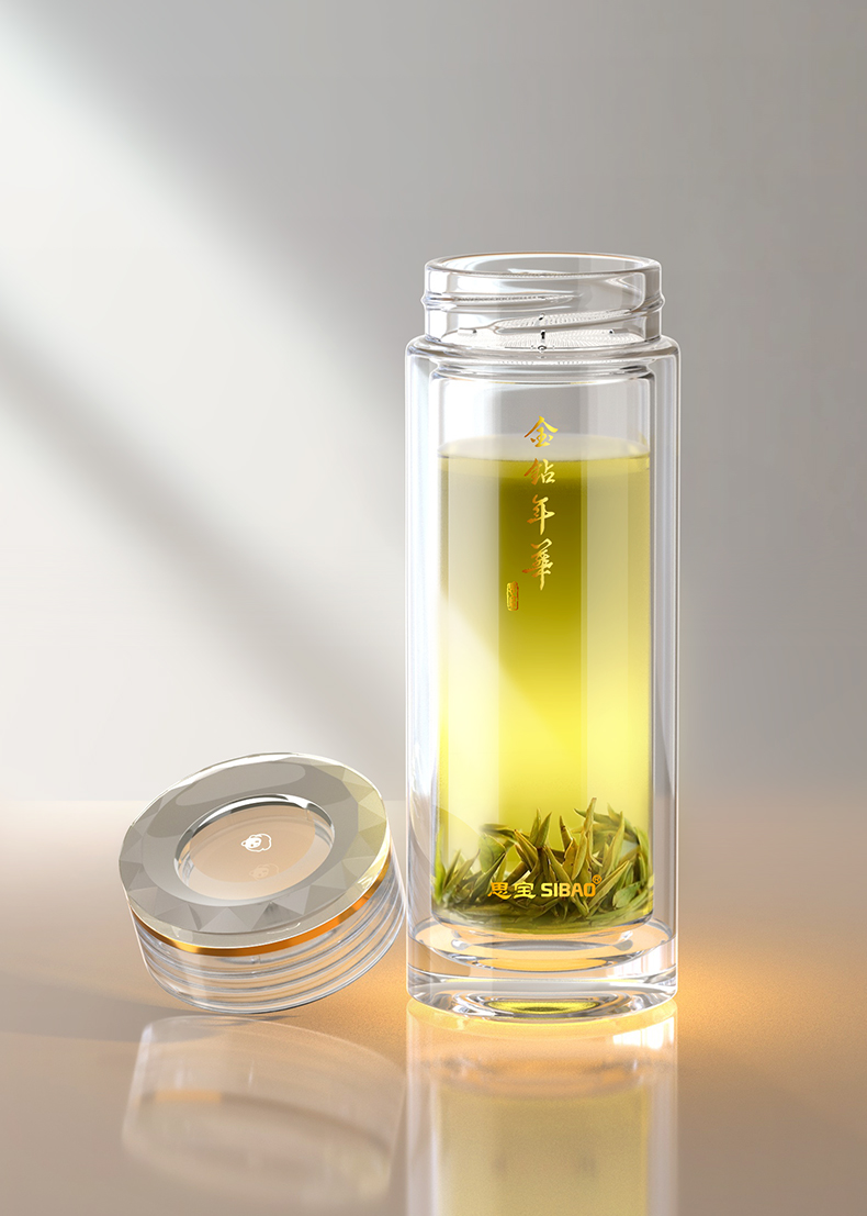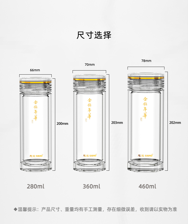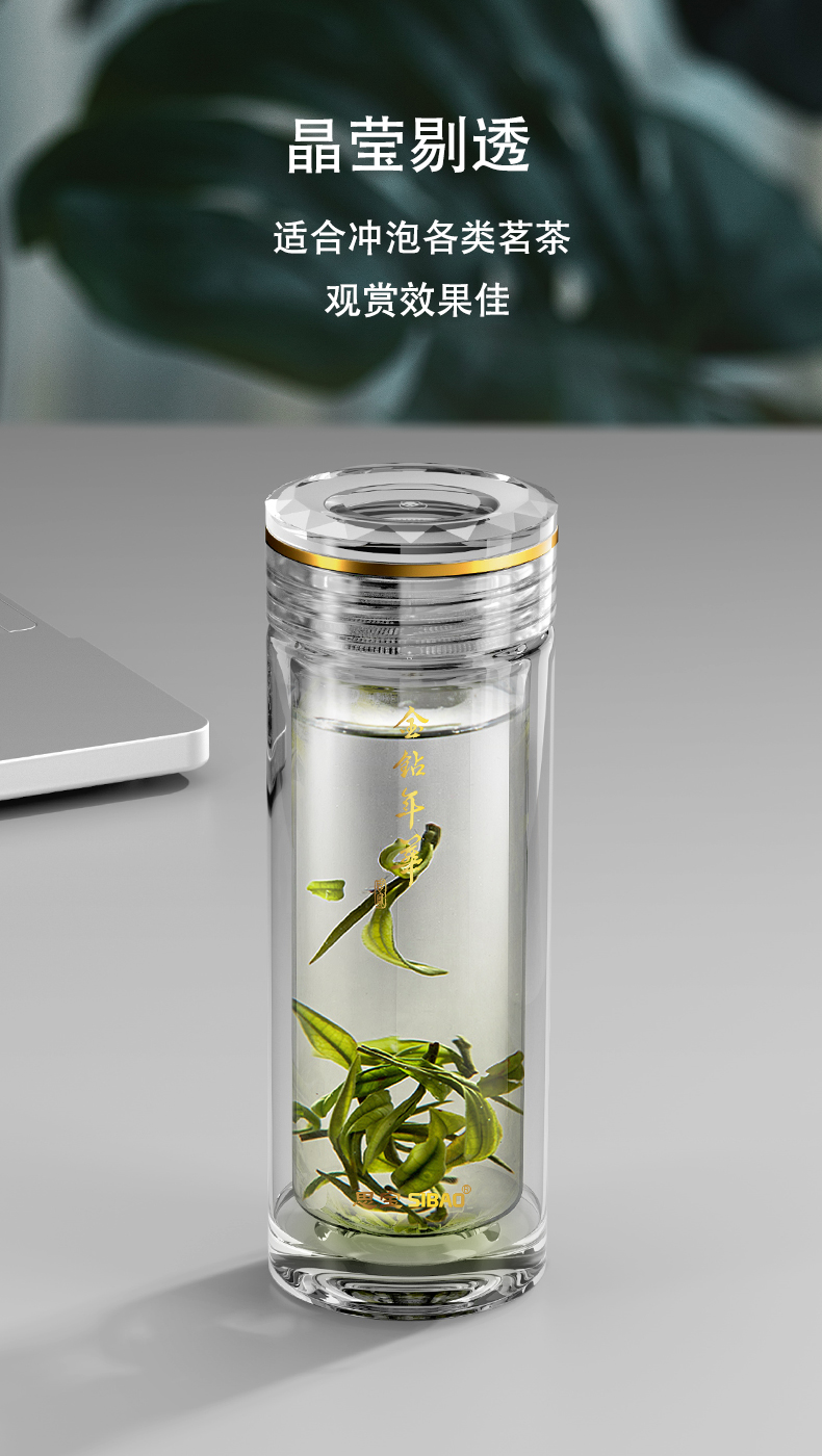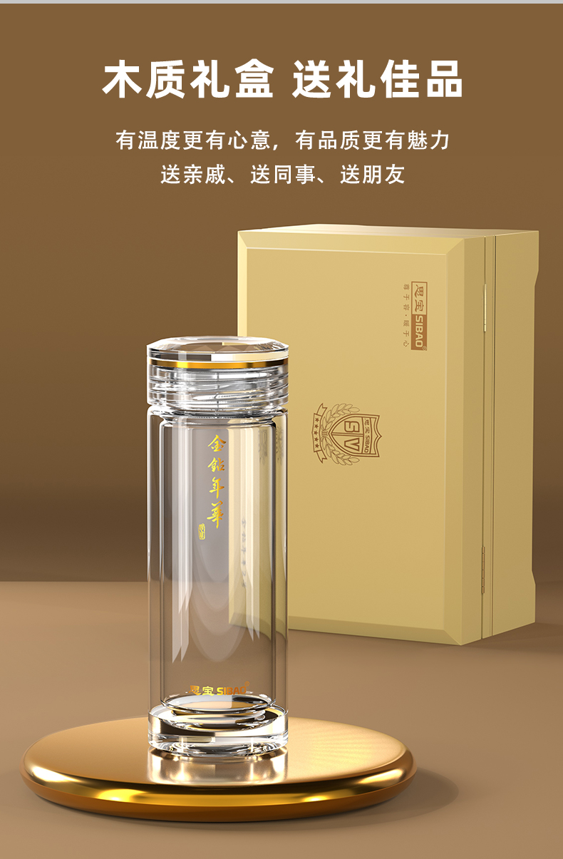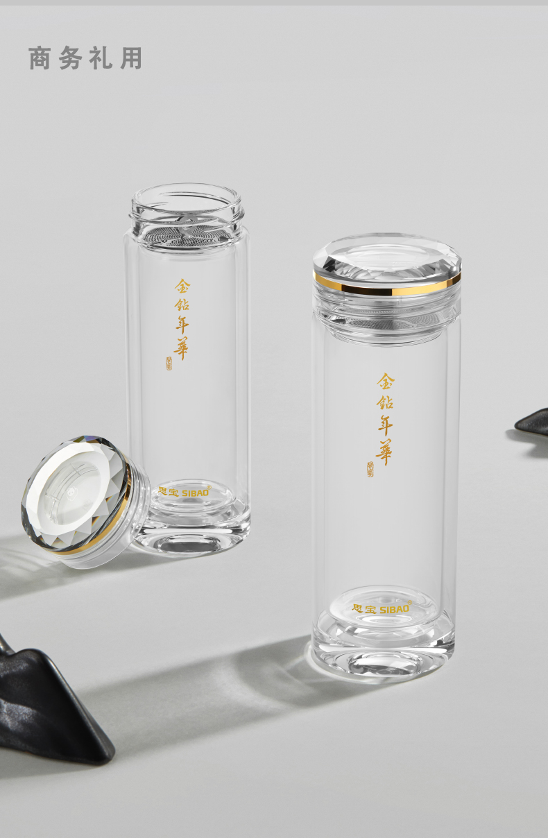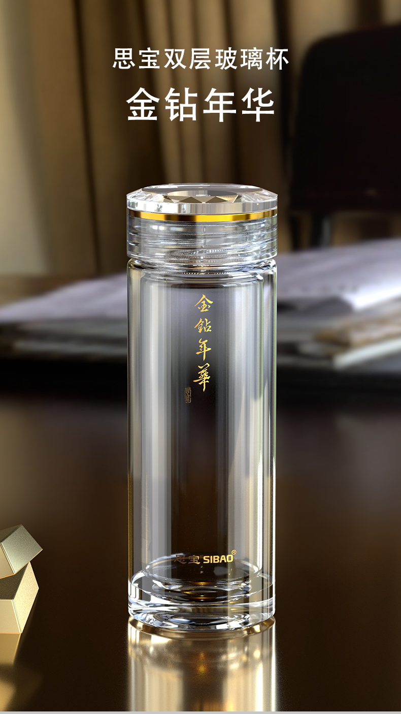 思宝旗舰店金钻年华双层玻璃杯商务女士办公礼品便携透明泡茶水杯
