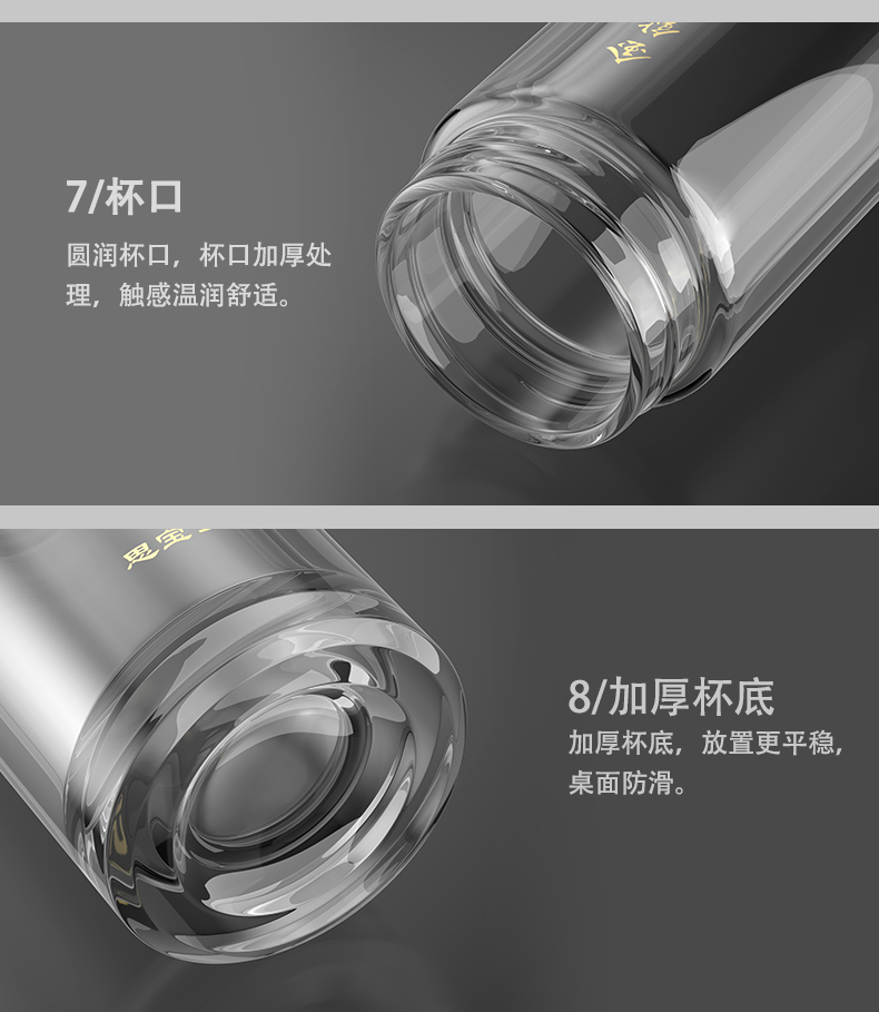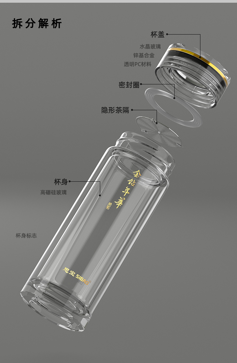 思宝官方旗舰店高山流水直筒男女士商务双层玻璃杯商场同款茶水杯