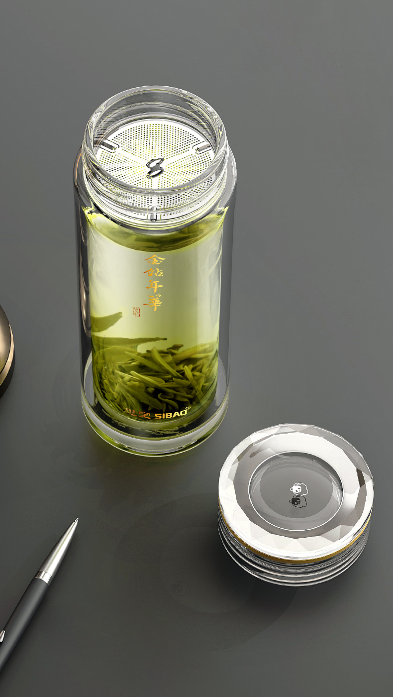 思宝新品瑞雪双层玻璃杯便携车载礼盒包装内置茶隔男女通用