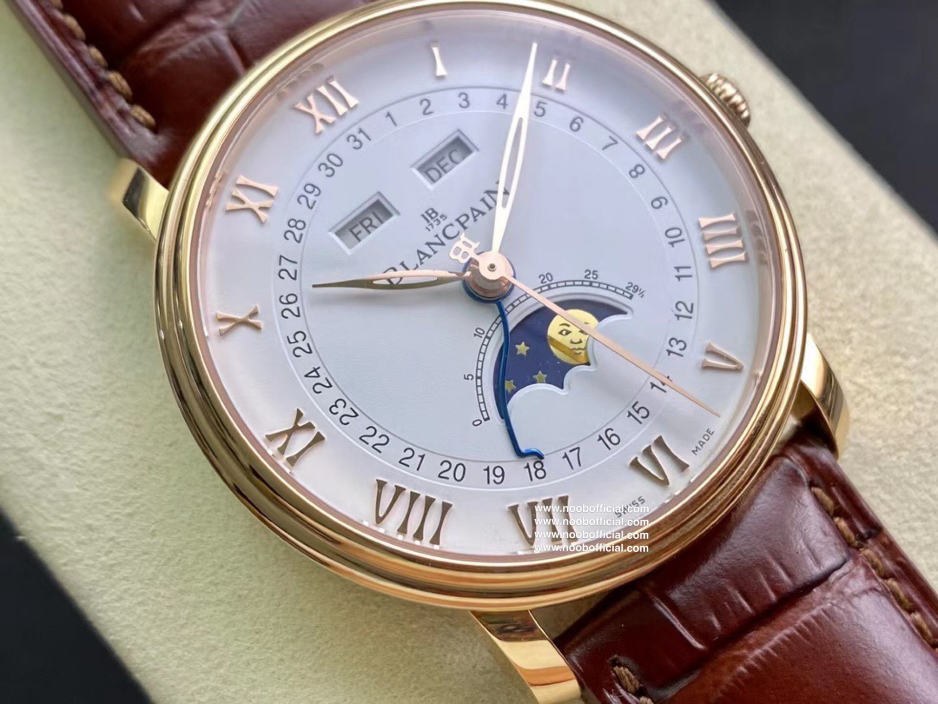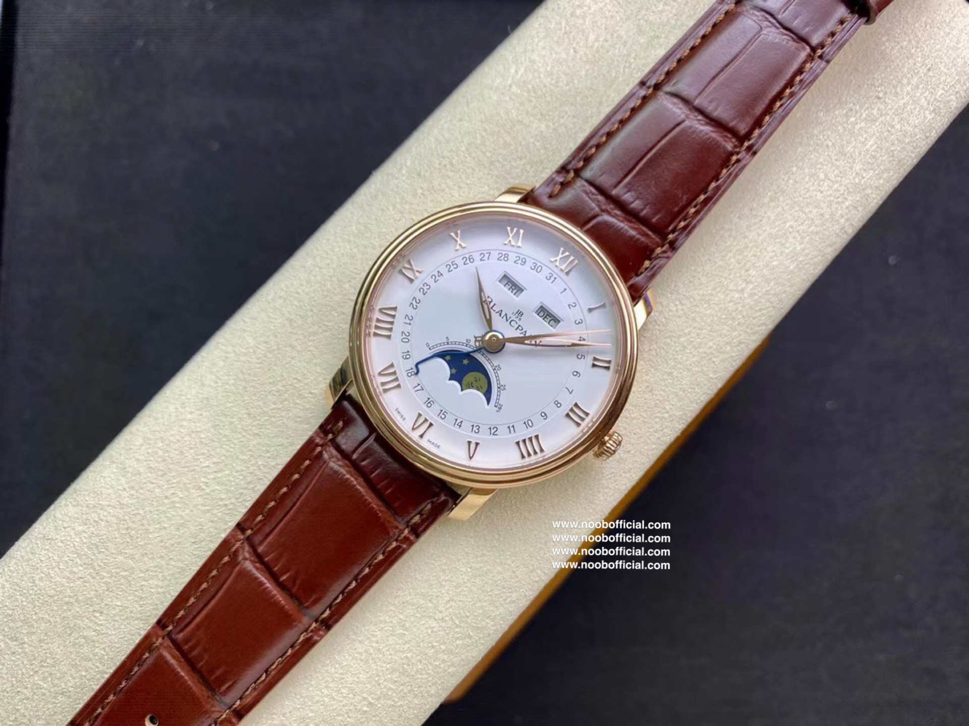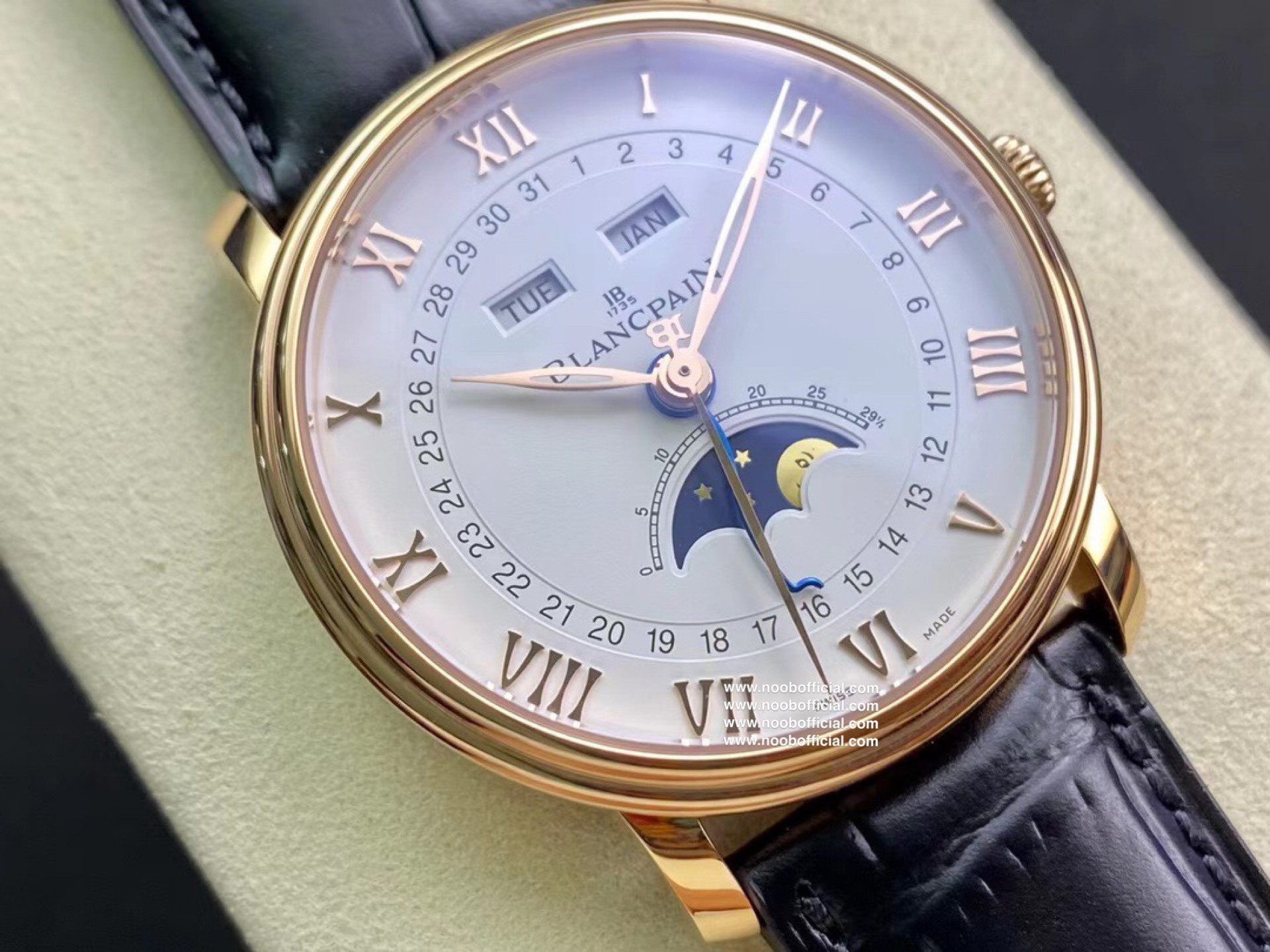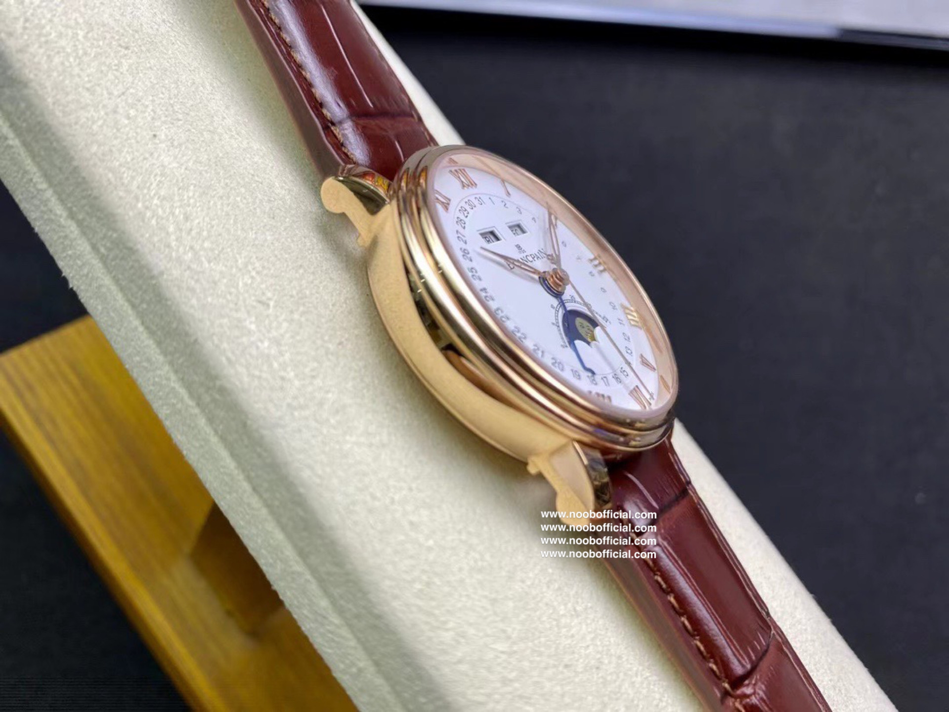 NOOB宝铂villeret经典系列 6654月相显示 耗时长达20个月,攻克重重难关研发自制Cal.6654机芯,日期显示,星期显示,月份显示,月相均为真功能,所以功能及外观均与原版一致,配件均采用进口材料制造还原正品品质,匠心打造🔥🔥🔥【1】圆形双层表圈薄型表壳 表壳抛光洁白光亮壳身圆R型 耳角斜边 耳角倒角均与原版一致【2】壳身内部全部CNC精雕细刻制作 按键弹簧采用进口专业弹簧工厂保证按键力度与原版一致【3】双面防反光耐磨损蓝宝石水晶玻璃【4】真正突破实现珐琅彩瓷盘窗位立体明显每个瓷面精心制造的。【5】原装表扣突破每个死角位都做到无痕迹完无暇,字体cnc精雕制造每个字做法都不同,表扣内侧BI大小厚度形体一致,表扣拉沙位细腻光滑线条完美。【6】机芯采用进口机芯改造6654,机芯精准0故障【7】40mm毫米配意大利进口牛皮,工艺复杂匠心独韵从内到外此表都付出了好大的心血,正品1:1制造 美绅士的必备搭配 首批少量到货表迷们预购从速。NOOB出品因为用心 所以专业 我们不一样!