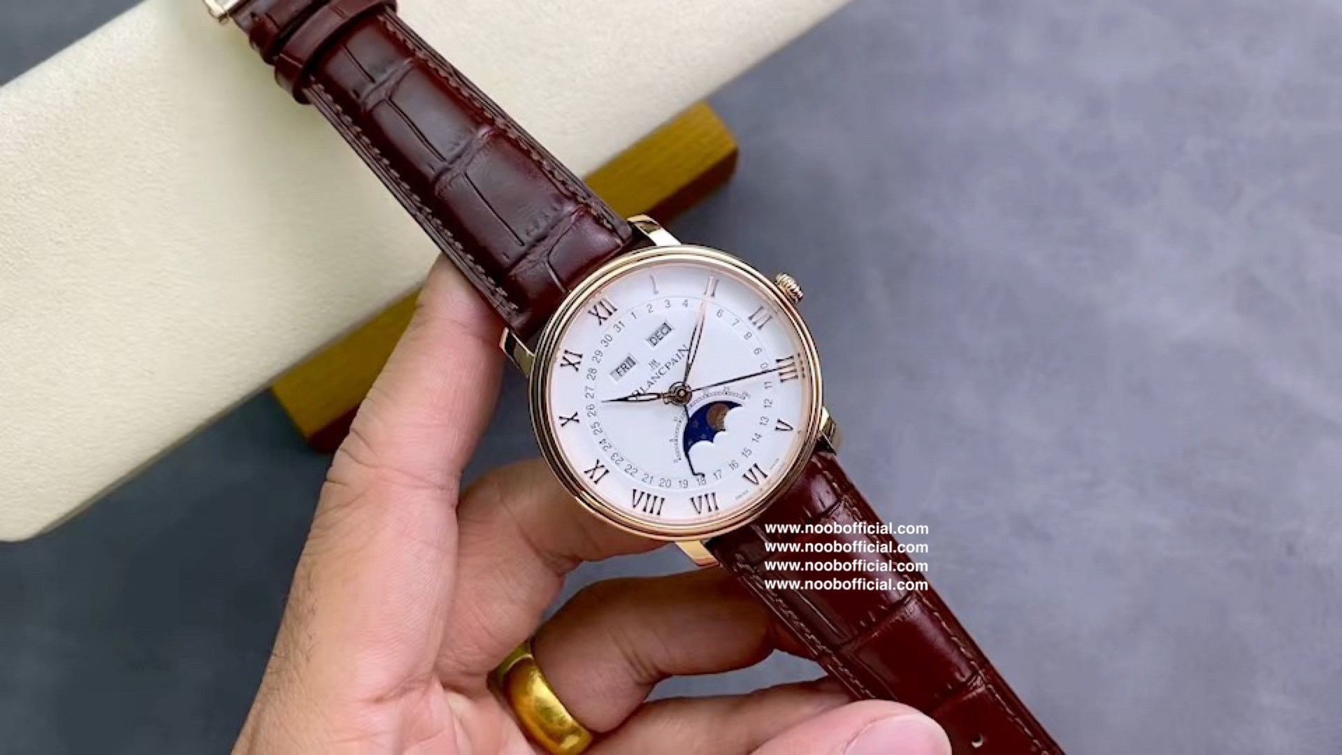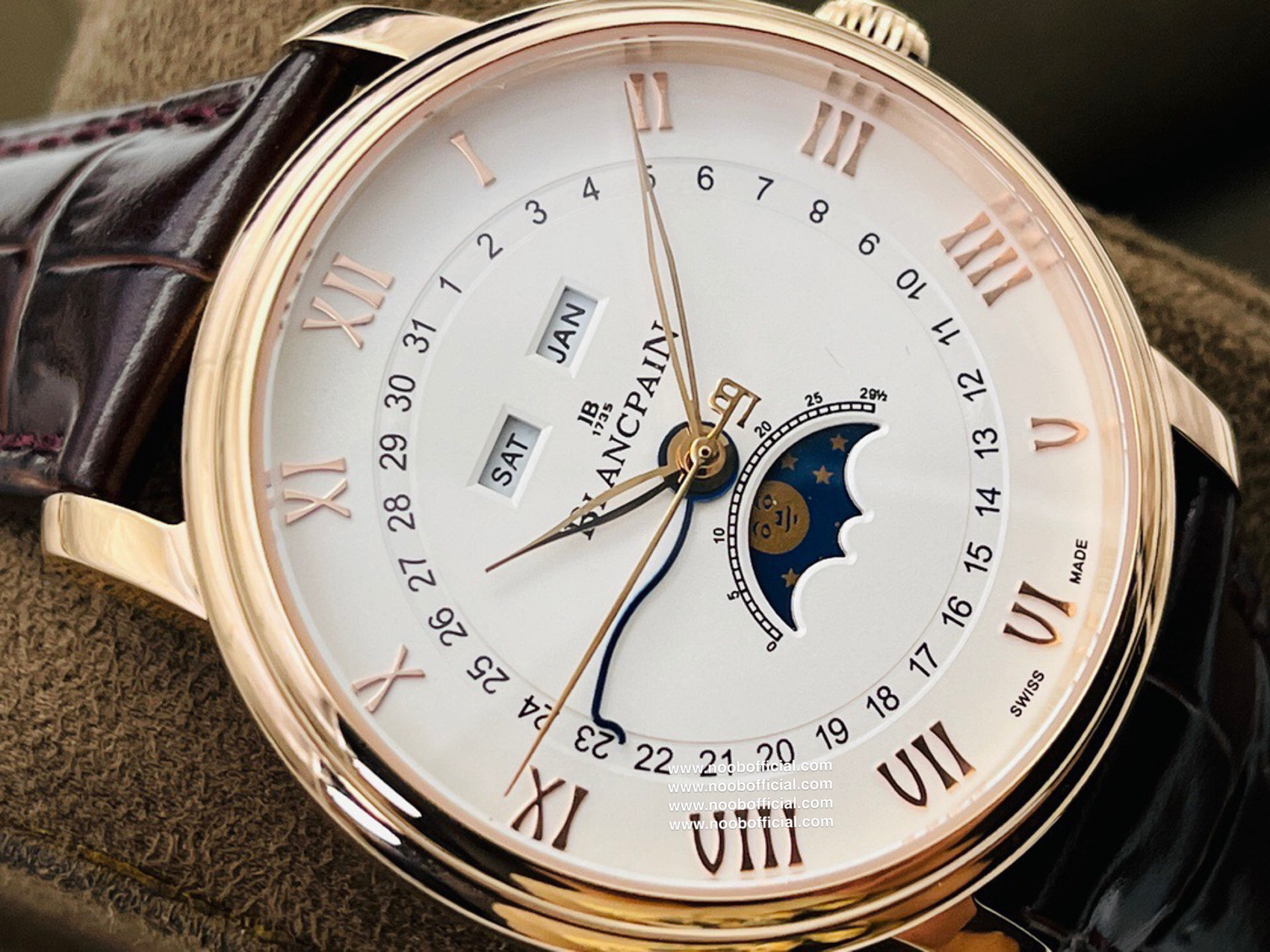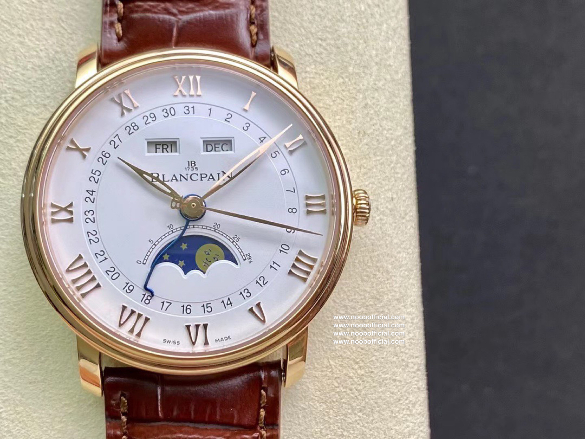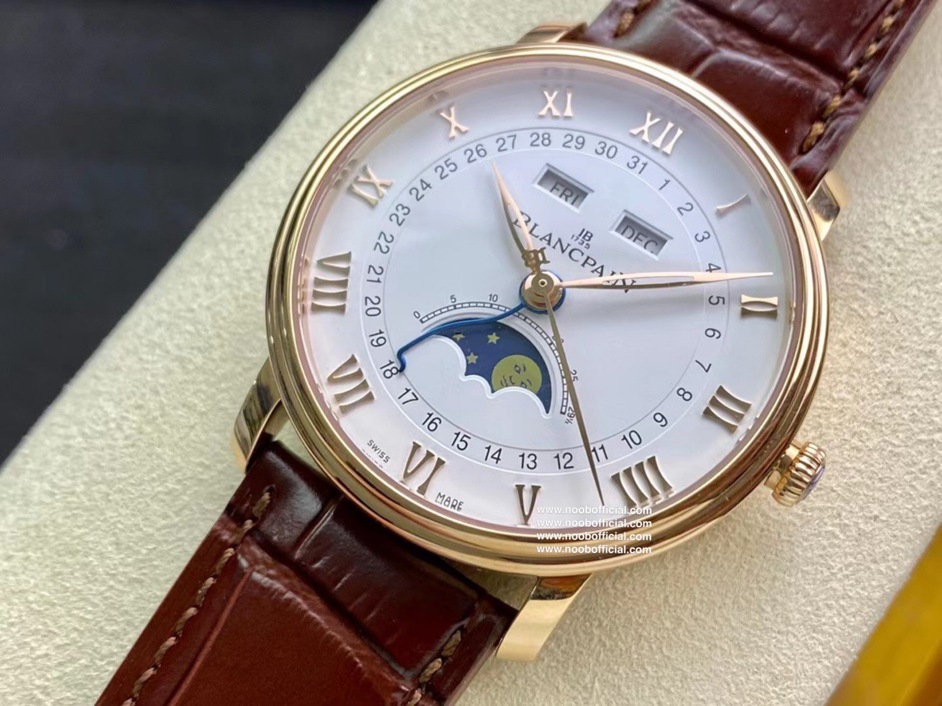 NOOB宝铂villeret经典系列 6654月相显示 耗时长达20个月,攻克重重难关研发自制Cal.6654机芯,日期显示,星期显示,月份显示,月相均为真功能,所以功能及外观均与原版一致,配件均采用进口材料制造还原正品品质,匠心打造🔥🔥🔥【1】圆形双层表圈薄型表壳 表壳抛光洁白光亮壳身圆R型 耳角斜边 耳角倒角均与原版一致【2】壳身内部全部CNC精雕细刻制作 按键弹簧采用进口专业弹簧工厂保证按键力度与原版一致【3】双面防反光耐磨损蓝宝石水晶玻璃【4】真正突破实现珐琅彩瓷盘窗位立体明显每个瓷面精心制造的。【5】原装表扣突破每个死角位都做到无痕迹完无暇,字体cnc精雕制造每个字做法都不同,表扣内侧BI大小厚度形体一致,表扣拉沙位细腻光滑线条完美。【6】机芯采用进口机芯改造6654,机芯精准0故障【7】40mm毫米配意大利进口牛皮,工艺复杂匠心独韵从内到外此表都付出了好大的心血,正品1:1制造 美绅士的必备搭配 首批少量到货表迷们预购从速。NOOB出品因为用心 所以专业 我们不一样!