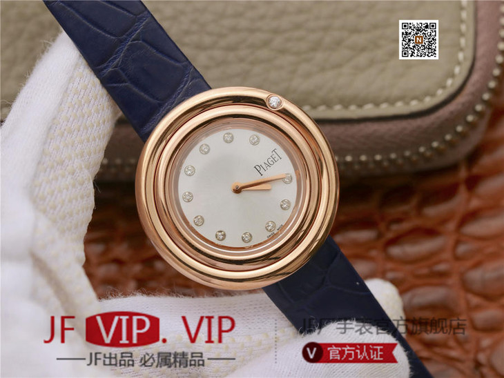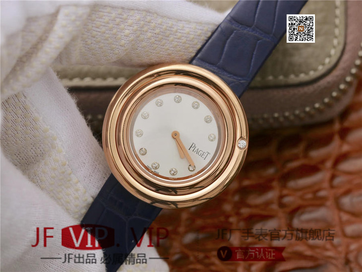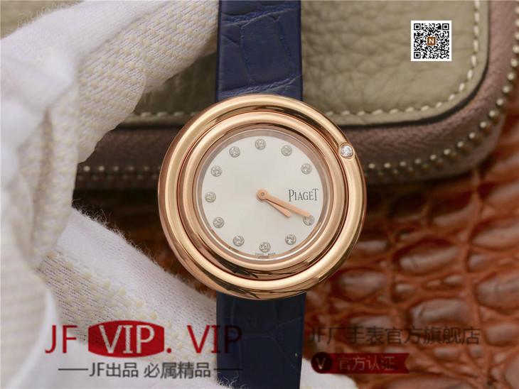 伯爵Possession女士腕表,此款腕表的圆形表圈也可以随着指尖完成360°优雅的旋转,中央的钻石随势划出一道优美的弧线,仿若在腕上跳一曲唯美的华尔兹,来甩掉烦躁、郁闷的心情。别具特色的操作,令此款腕表在众多女士款项之中脱颖而出,呈现独有的动感魅力。醒目的彩色短吻鳄鱼表带,搭配一枚小巧的针扣,精巧细致。除此之外,还会附赠一条黑色丝绢表带,便于佩戴者根据心情变化或造型风格自由替换。此外,在表带连接表壳的位置,设有了一个快拆装置,仅通过佩戴者的双手便可完成表带的更换。为了保障外壳的经典圆形美学,表冠被设置在了腕表后方的中心位置,以专用工具触碰中心圆点,保持不动,表盘时针、分针会顺时针匀速走动,松开后便会停止,完成调较。相信此枚Piaget伯爵Possession腕表,对每一位追潮流赶时尚的当代都市女性来说,都值得拥有