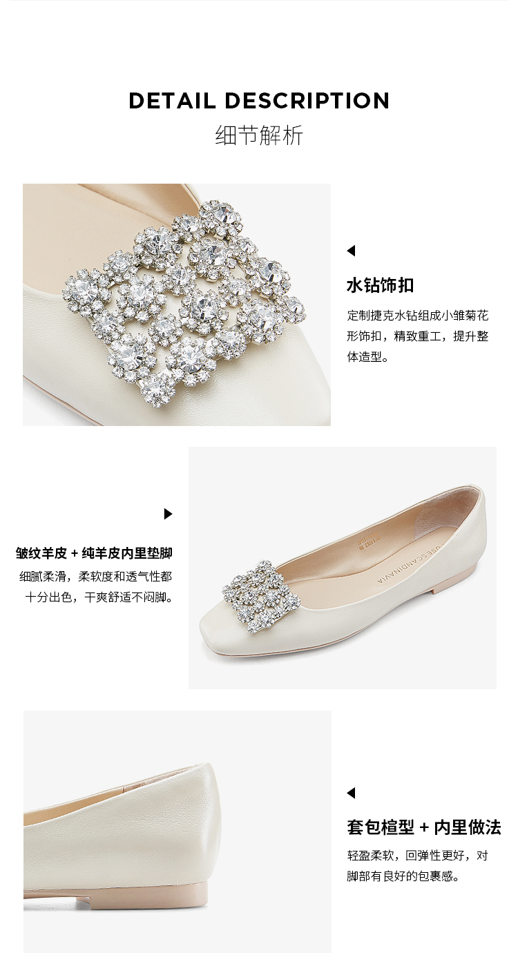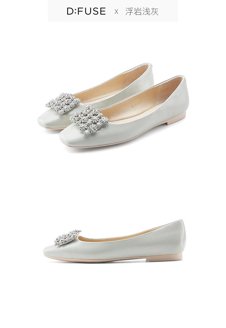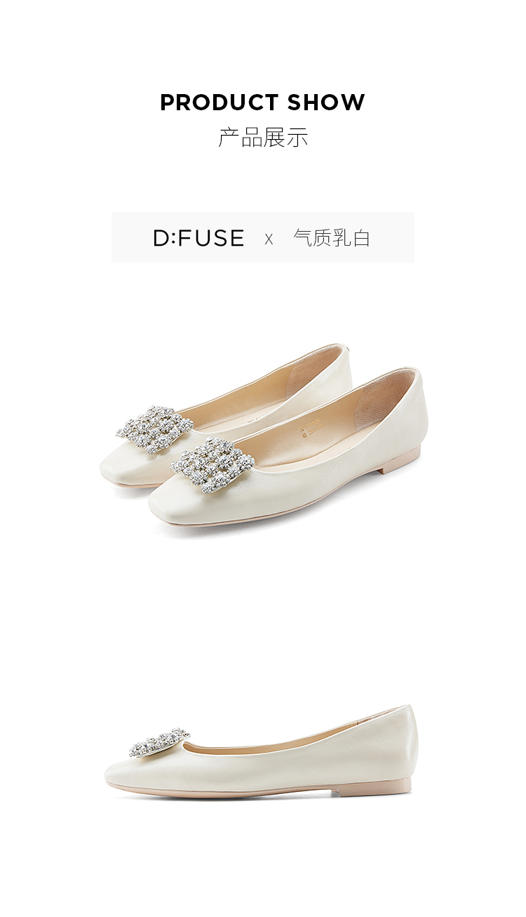 D:FUSE/迪芙斯2023春季新款羊皮方头花形饰扣平底单鞋女DF31111025