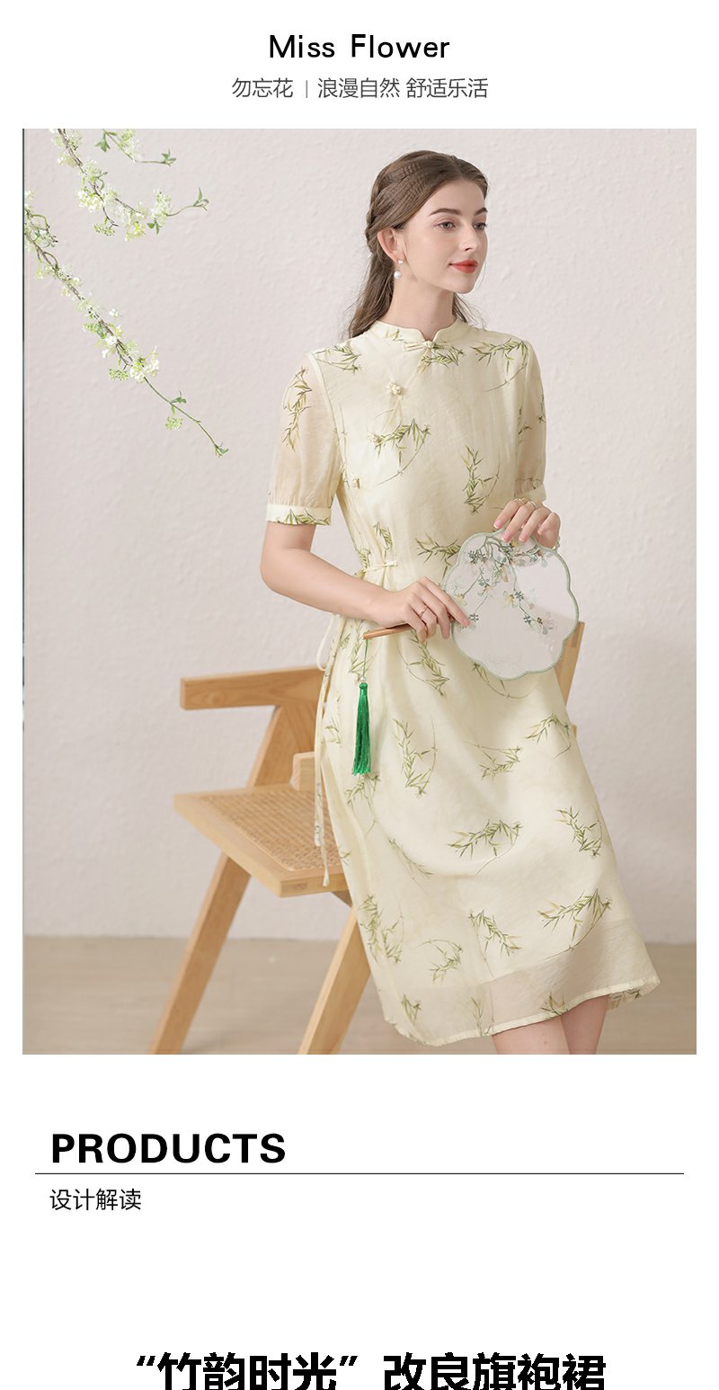 勿忘花天丝连衣裙女夏季新款2025新中式国风改良旗袍夏小个子裙子