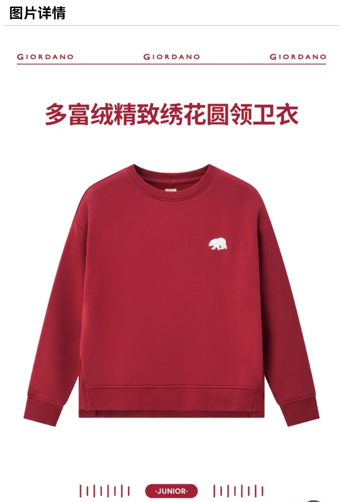 佐丹奴女装25年新款多富绒精致绣花圆领卫衣05325602