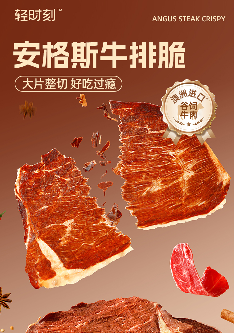 【原味缺货】【双12史低价⚡7.7起超值秒杀】【1袋装】【满39包邮】轻时刻™安格斯牛排脆(香辣味)25克/袋