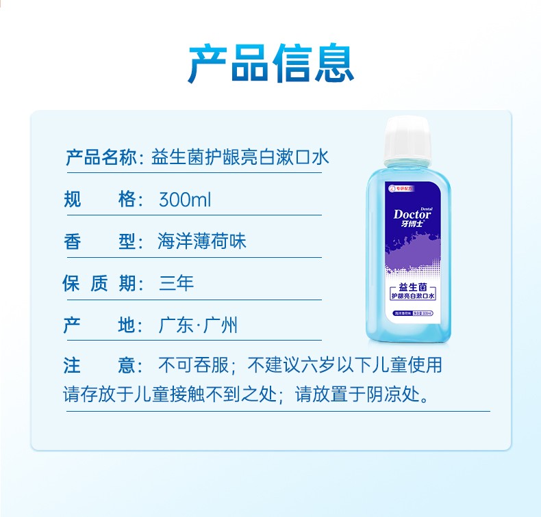 牙博士益生菌护龈亮白漱口水300ml*2瓶