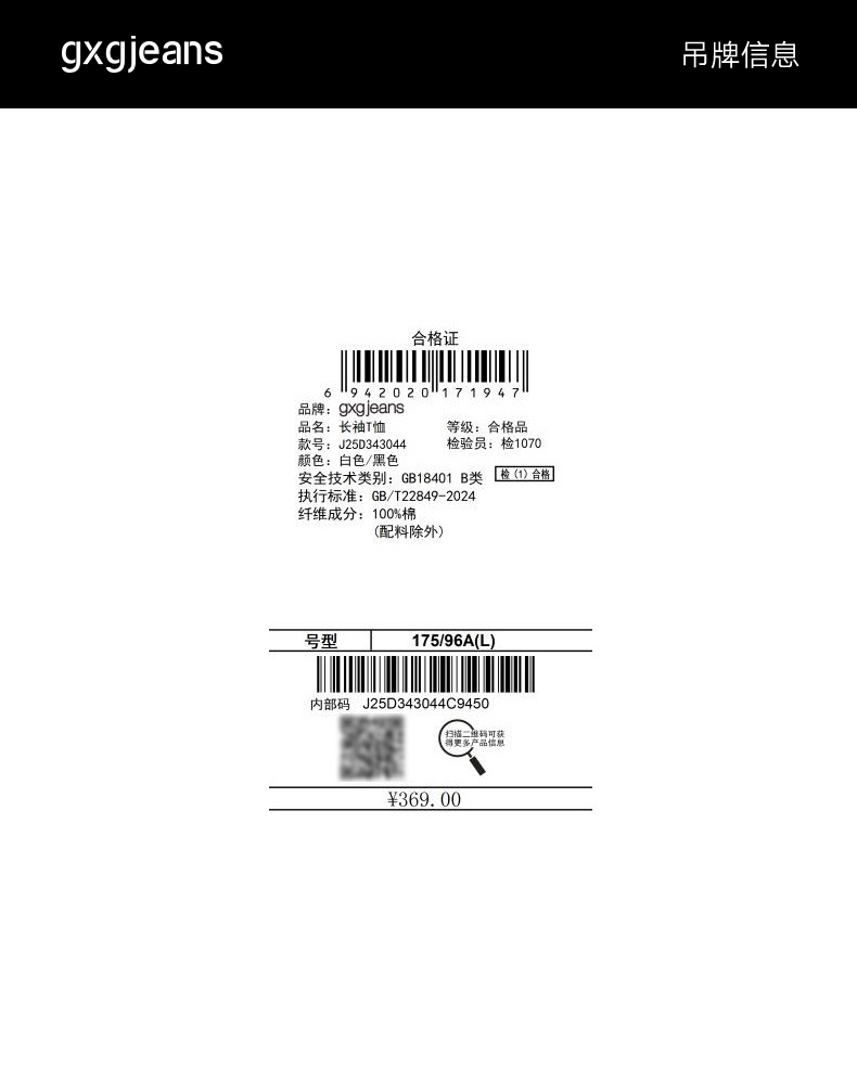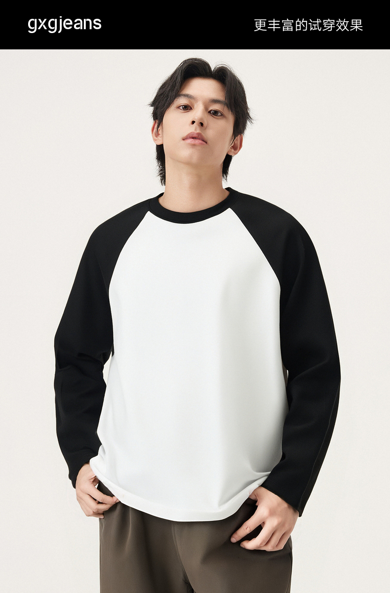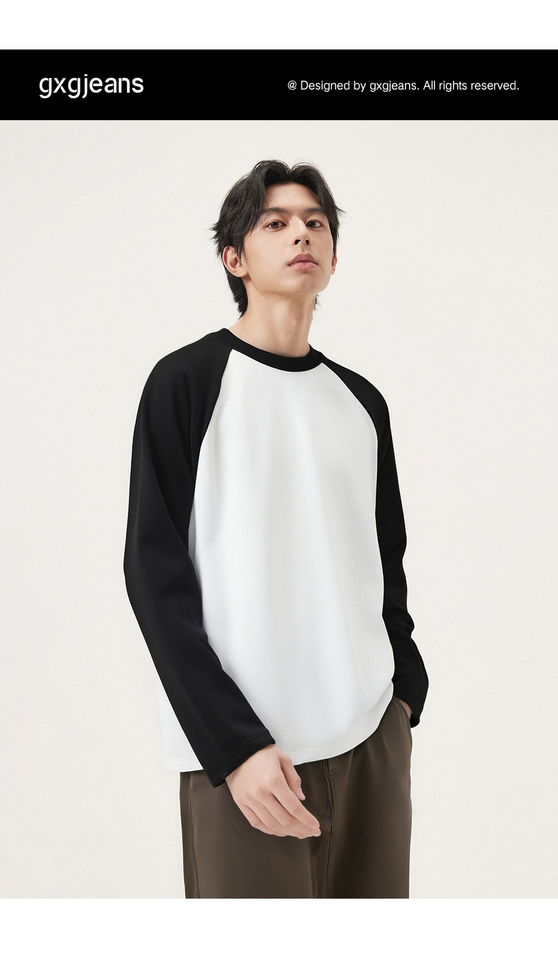 gxg.jeans男装 多色插肩袖基础打底长袖T恤男女同款情侣长袖T 25秋热卖