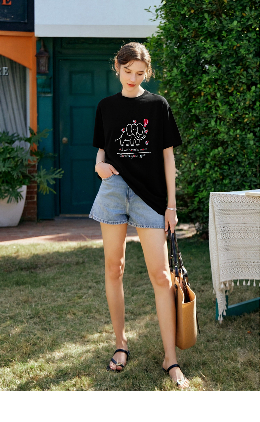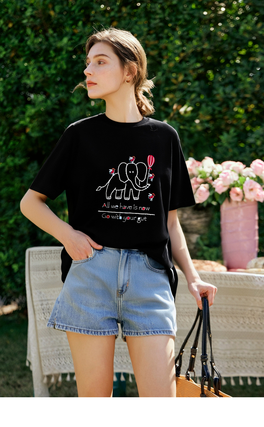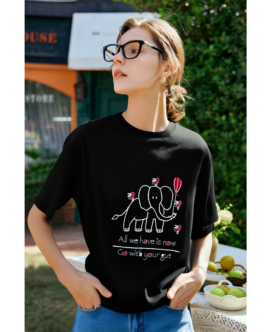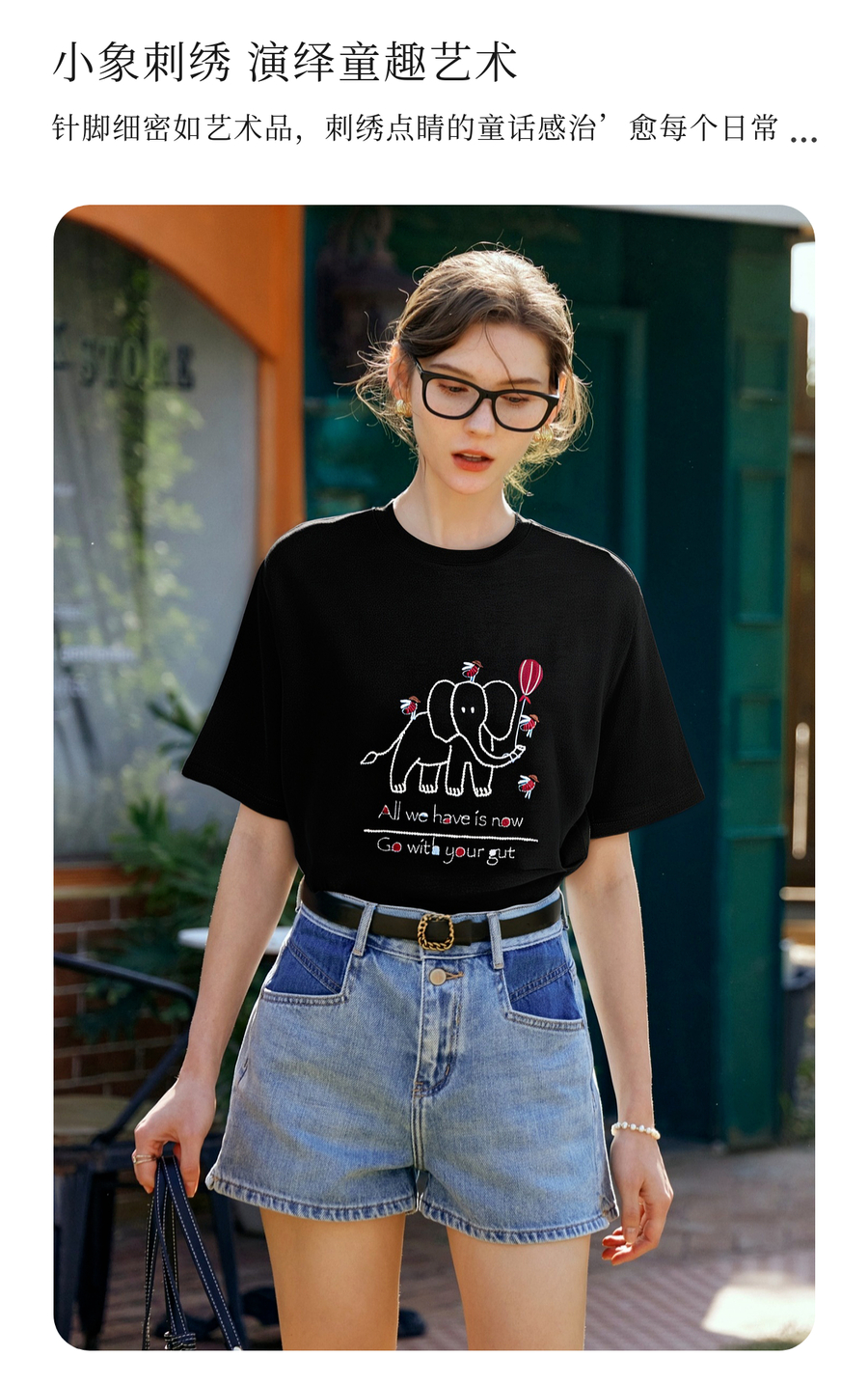 OLrain欧芮儿黑色绣花设计感T恤女夏季2025新款宽松显瘦洋气上衣