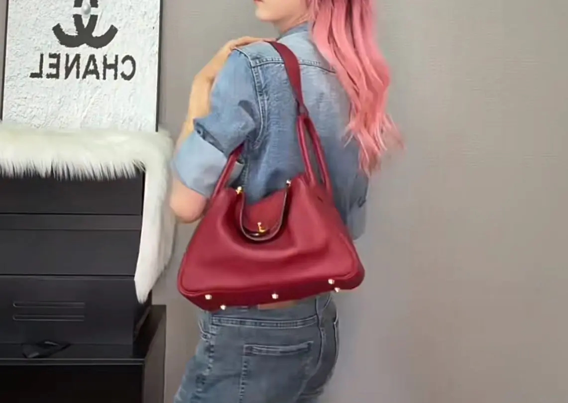爱马仕 lindy 26 togo皮 石榴红 单肩包