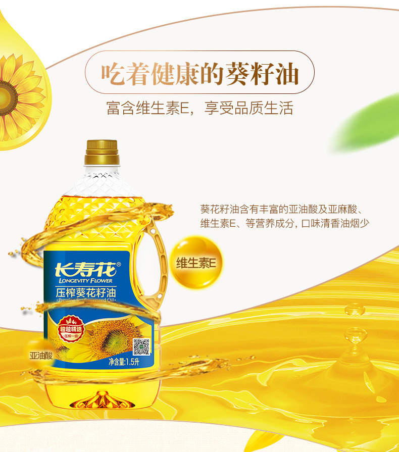 【高圆圆推荐】长寿花葵花籽油1.5L*1食用油非转基因家用炒菜烘焙