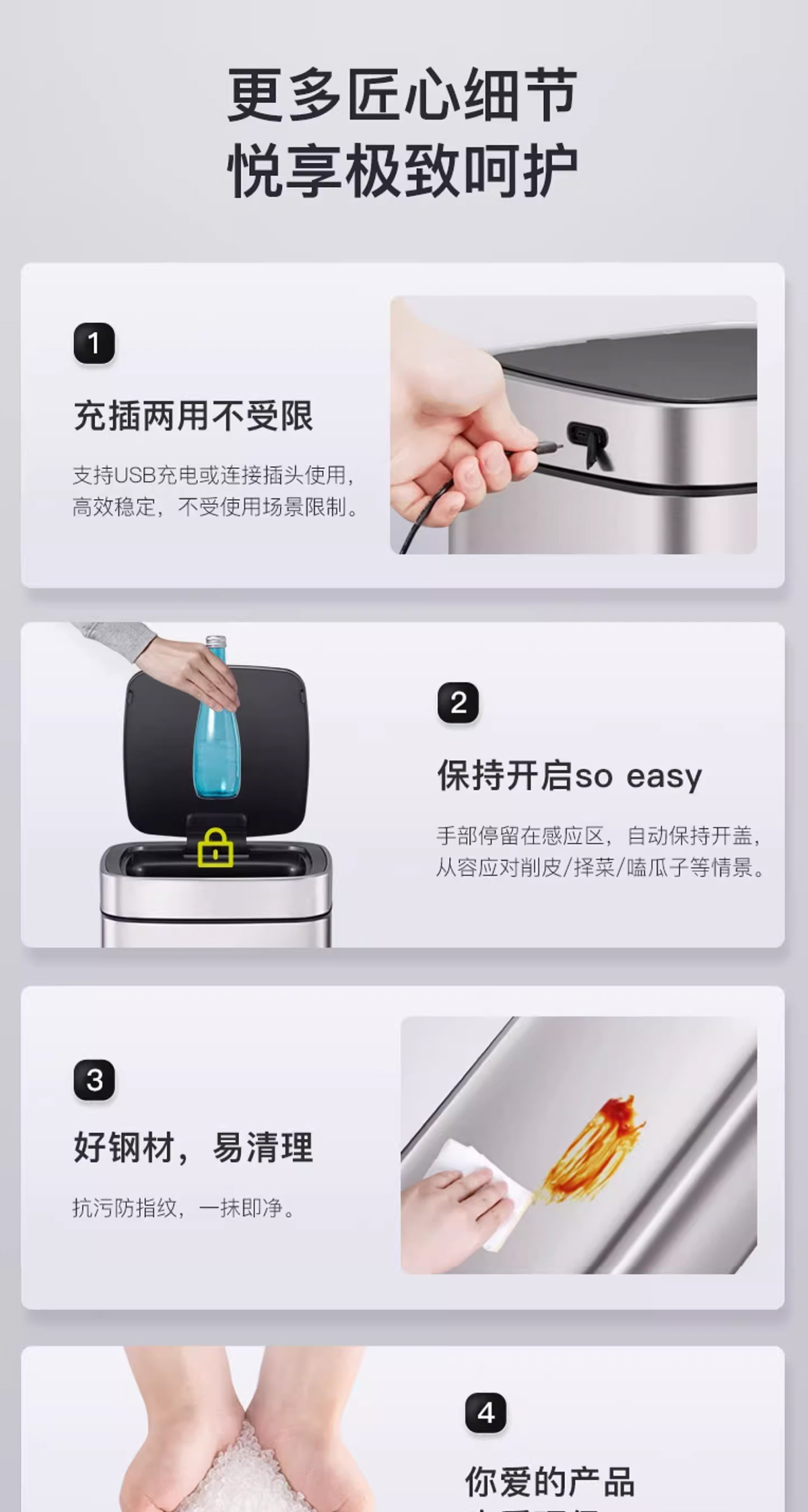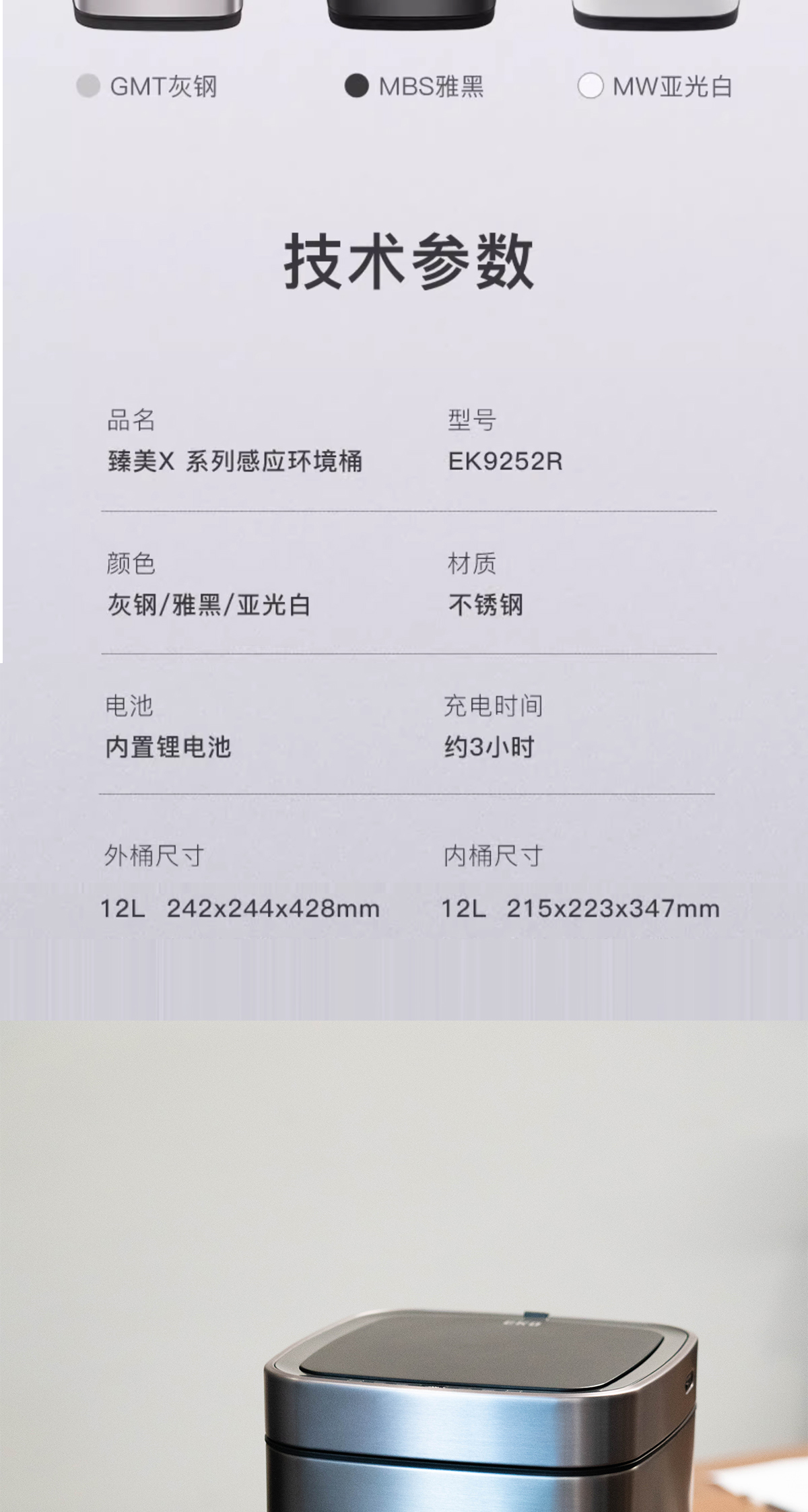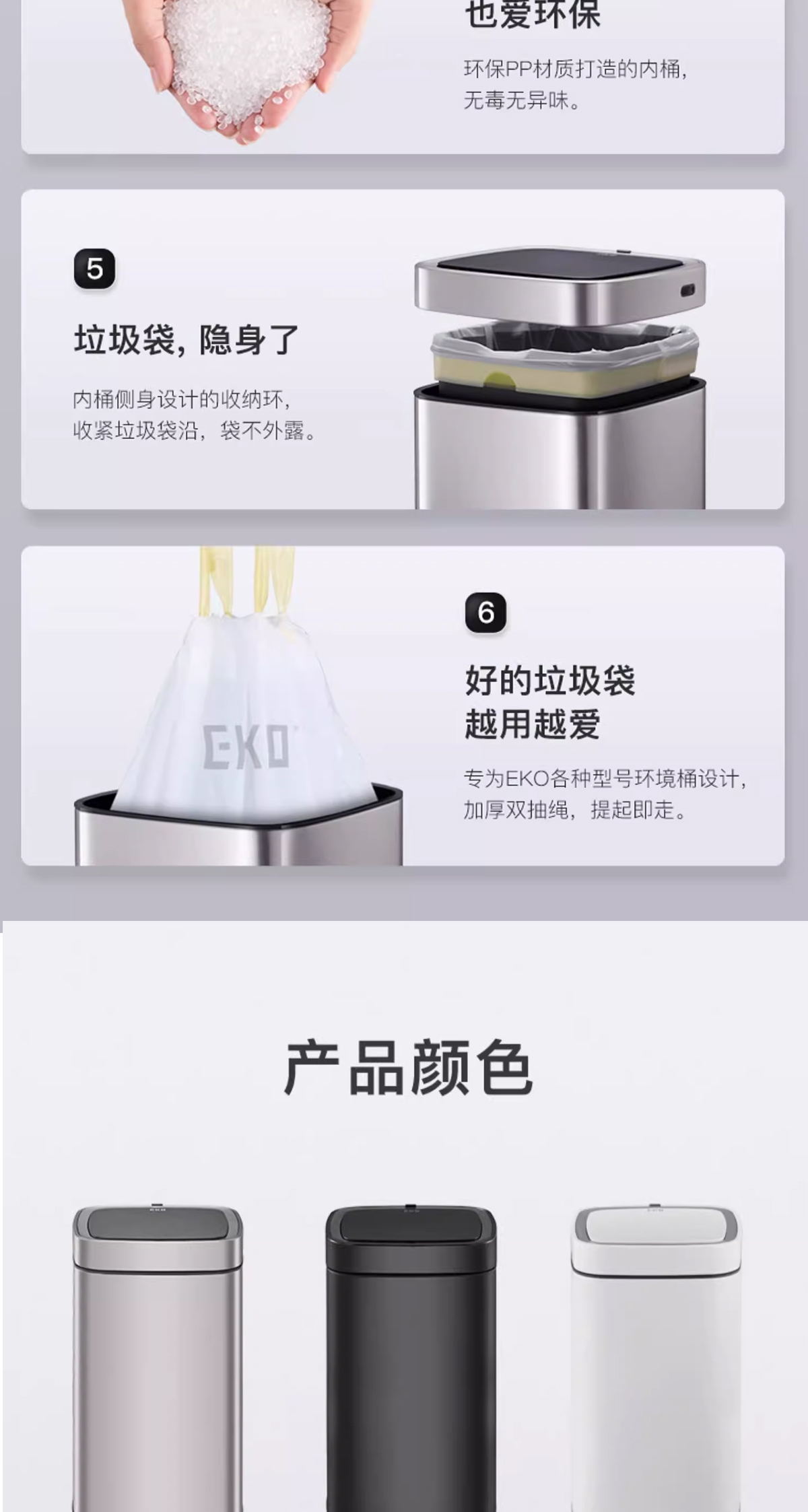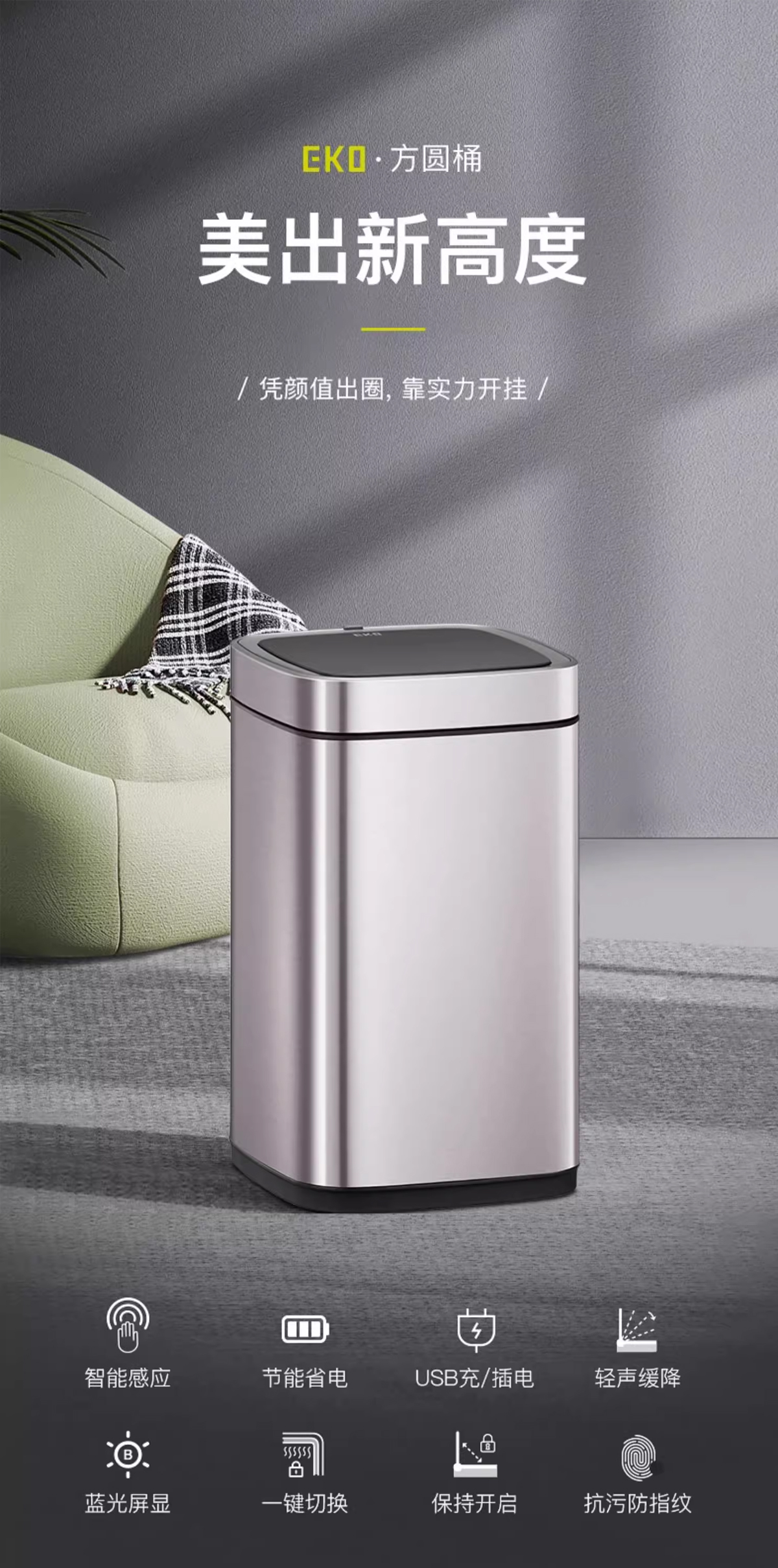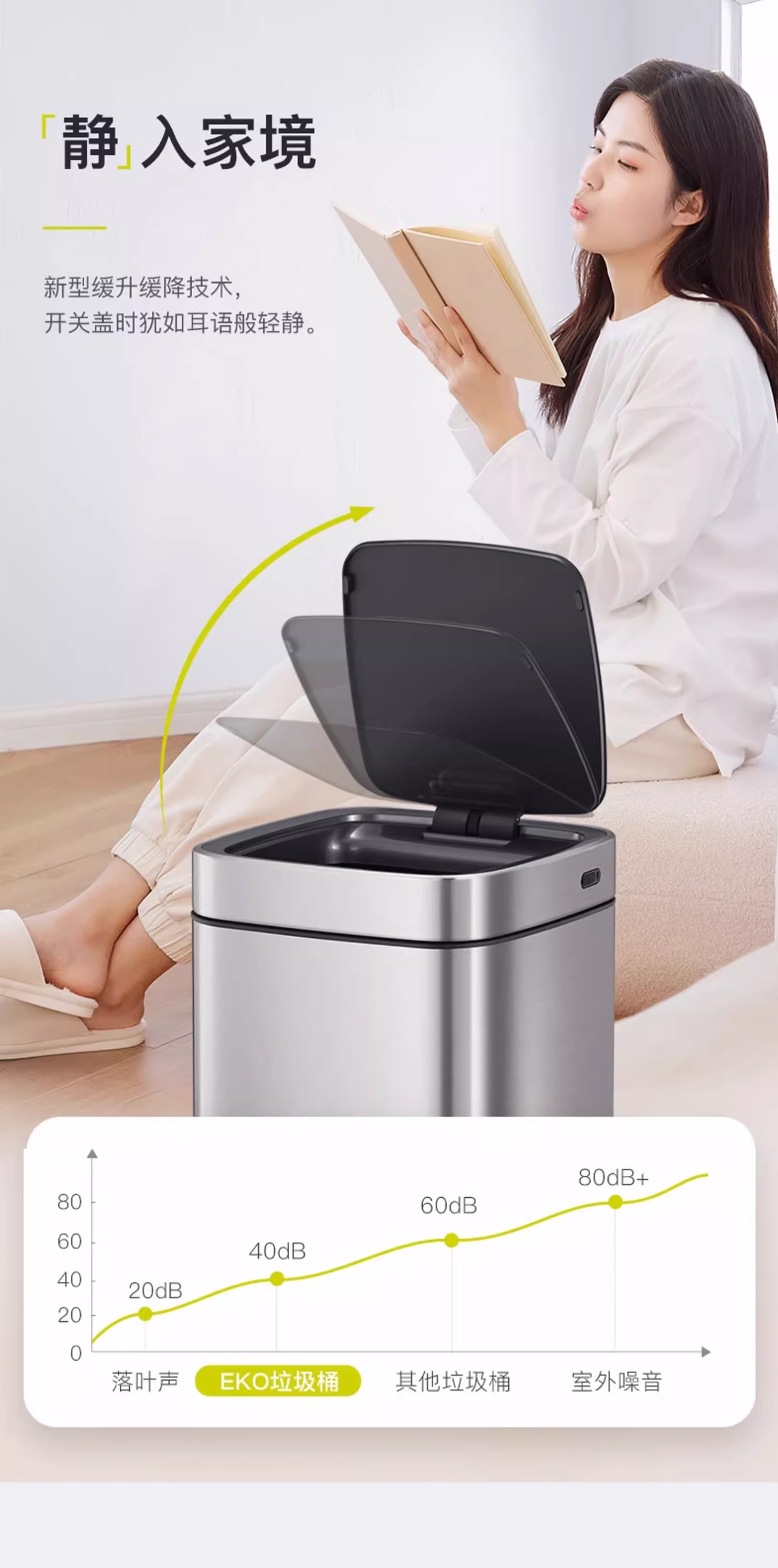 EKO智能垃圾桶自动感应家用客厅厨房不锈钢卫生间大容量垃圾桶