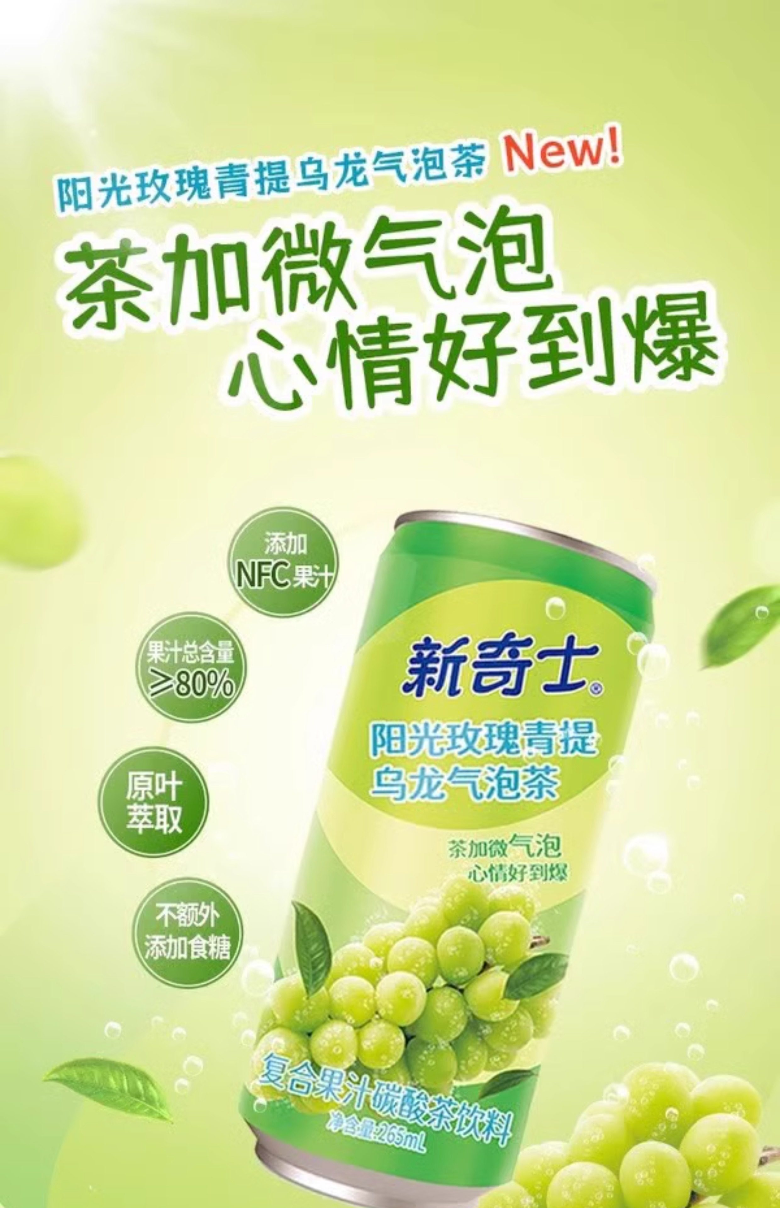 MM 新奇士阳光玫瑰青提乌龙气泡茶265ml