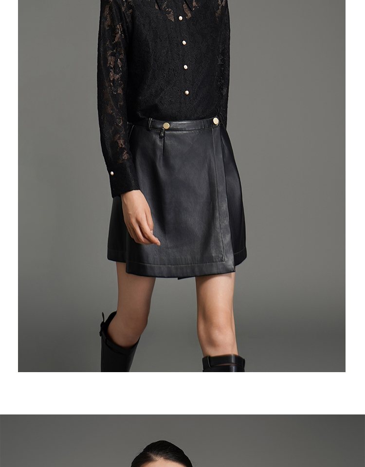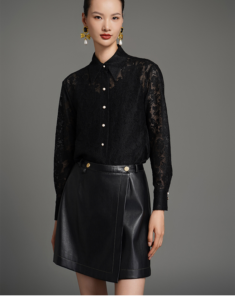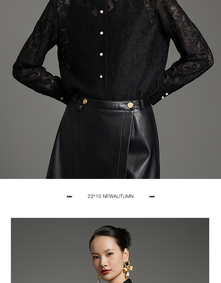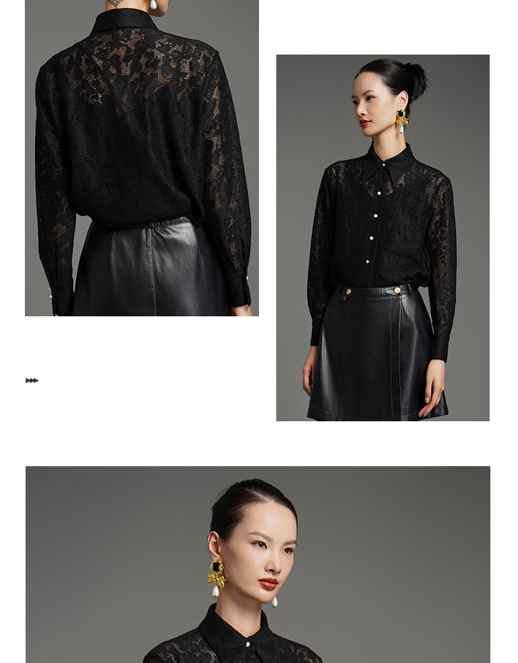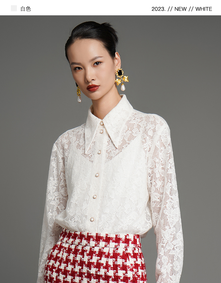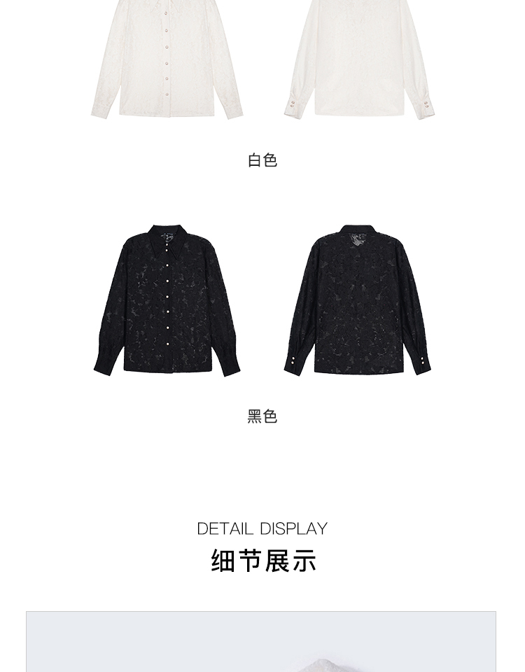 RSG郭培成衣品牌黑白两色有机棉纺织蕾丝面料翻领长袖春秋衬