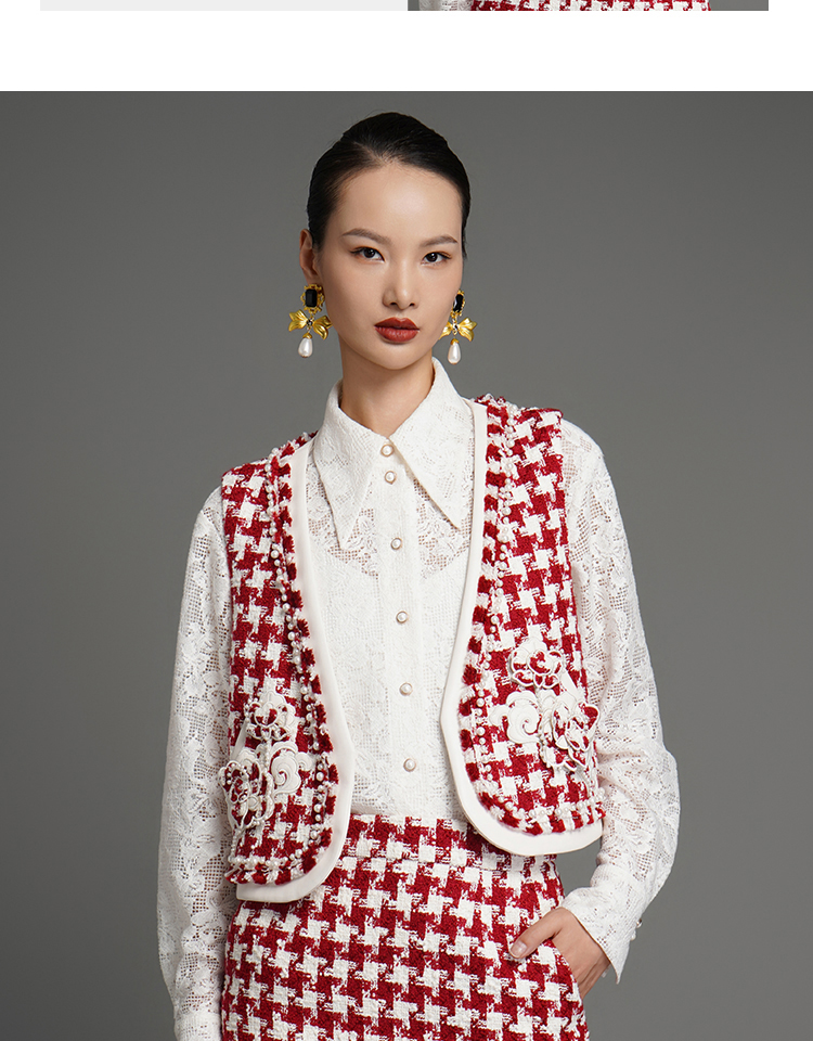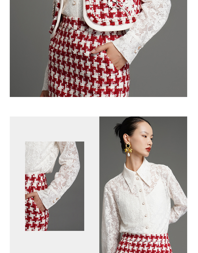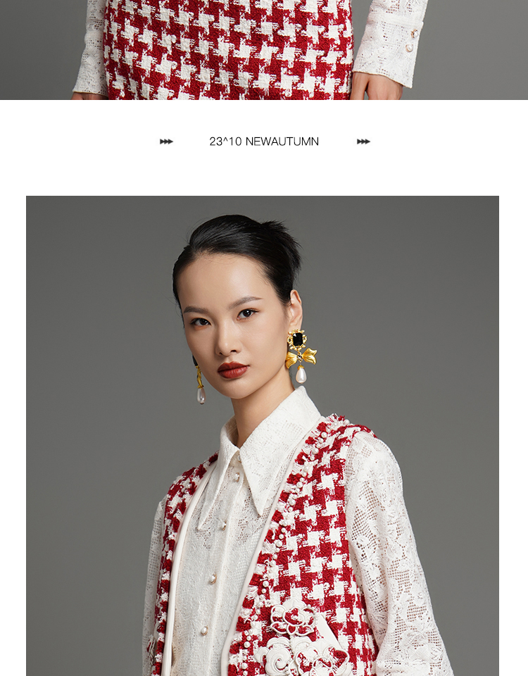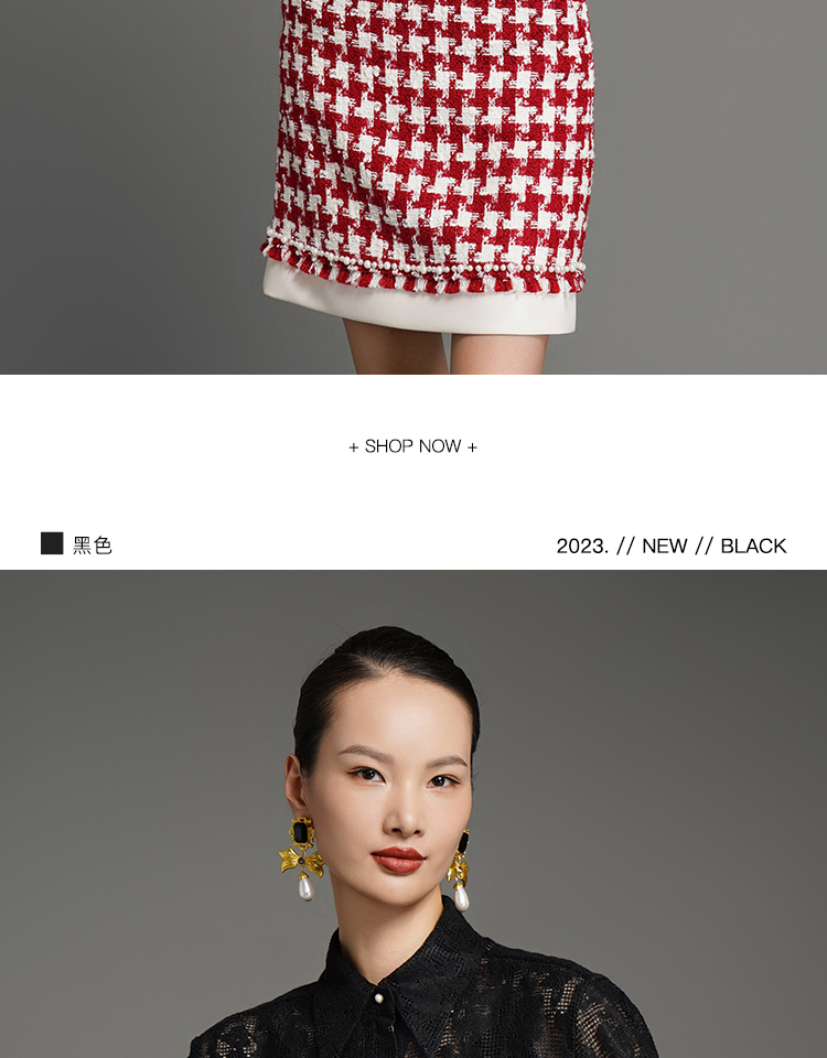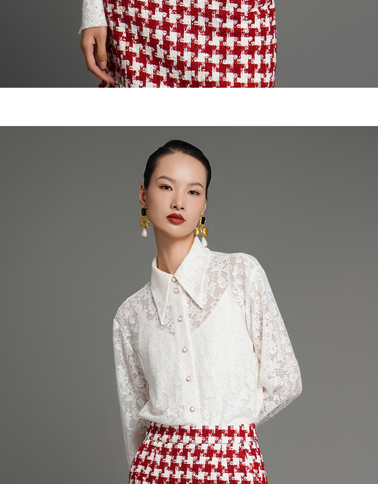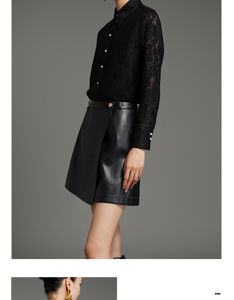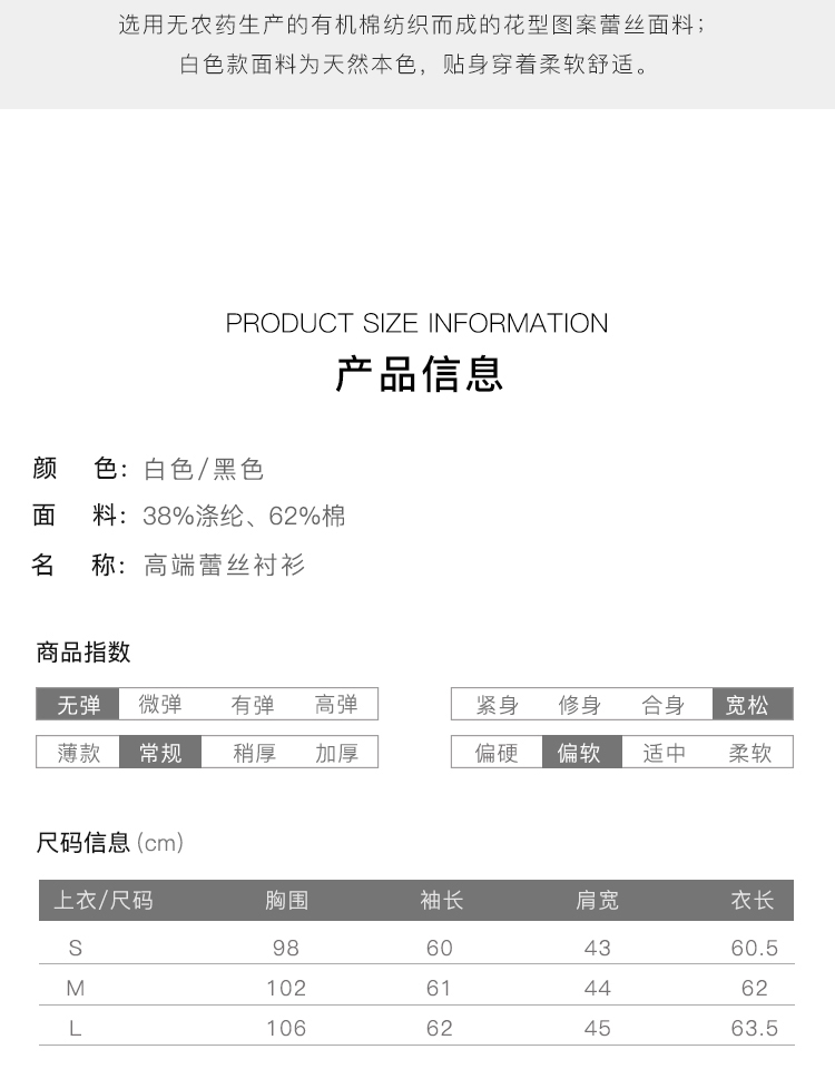 RSG郭培成衣品牌黑白两色有机棉纺织蕾丝面料翻领长袖春秋衬
