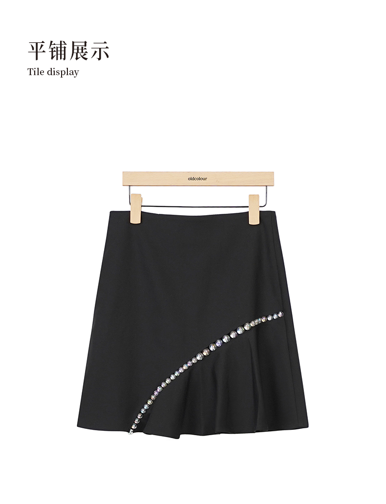 oldcolour黑色半身裙春秋季新款高腰气质设计感A字短裙女O33061372