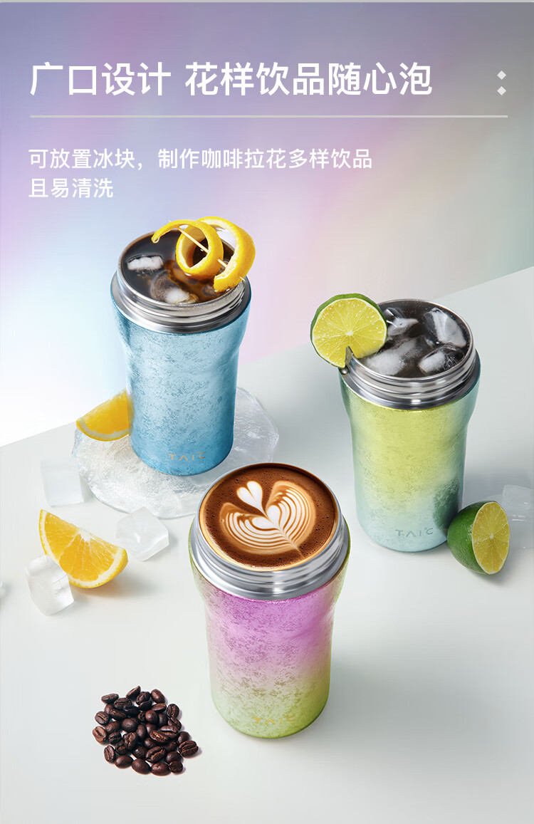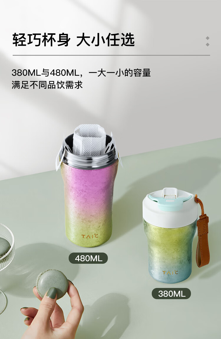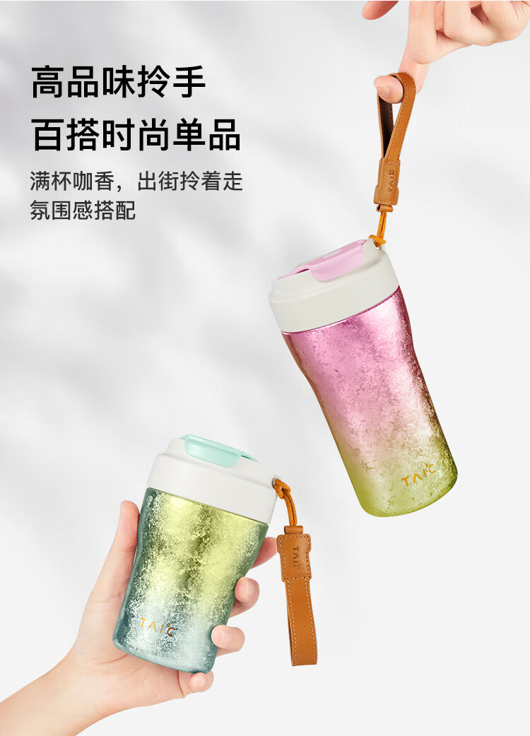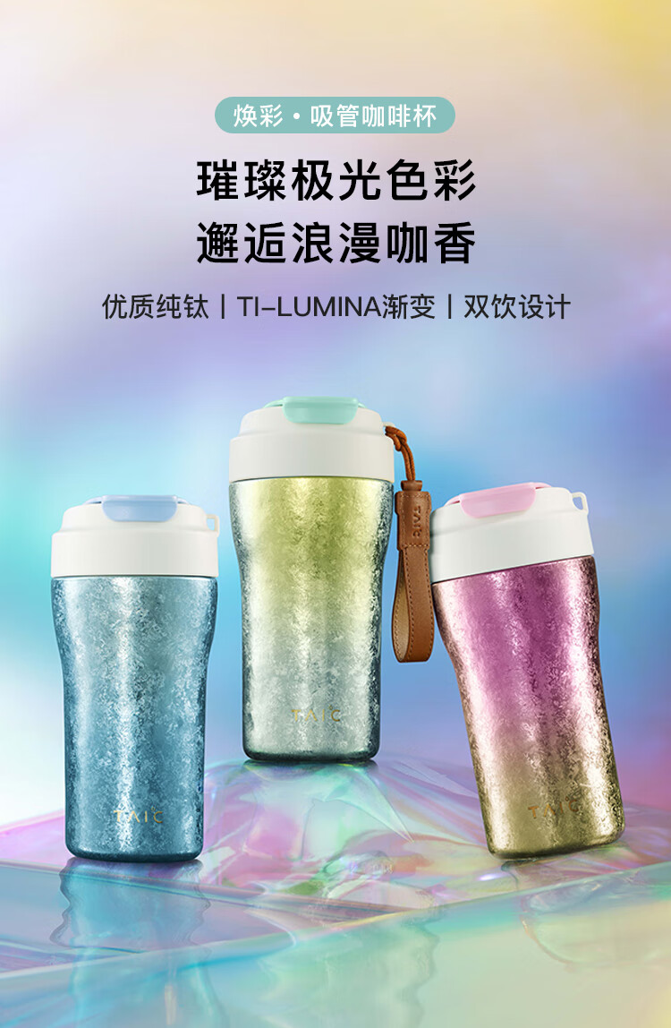 TAIC太可纯钛保温杯保冷幻彩咖啡杯高颜值轻奢便携随行杯带提绳