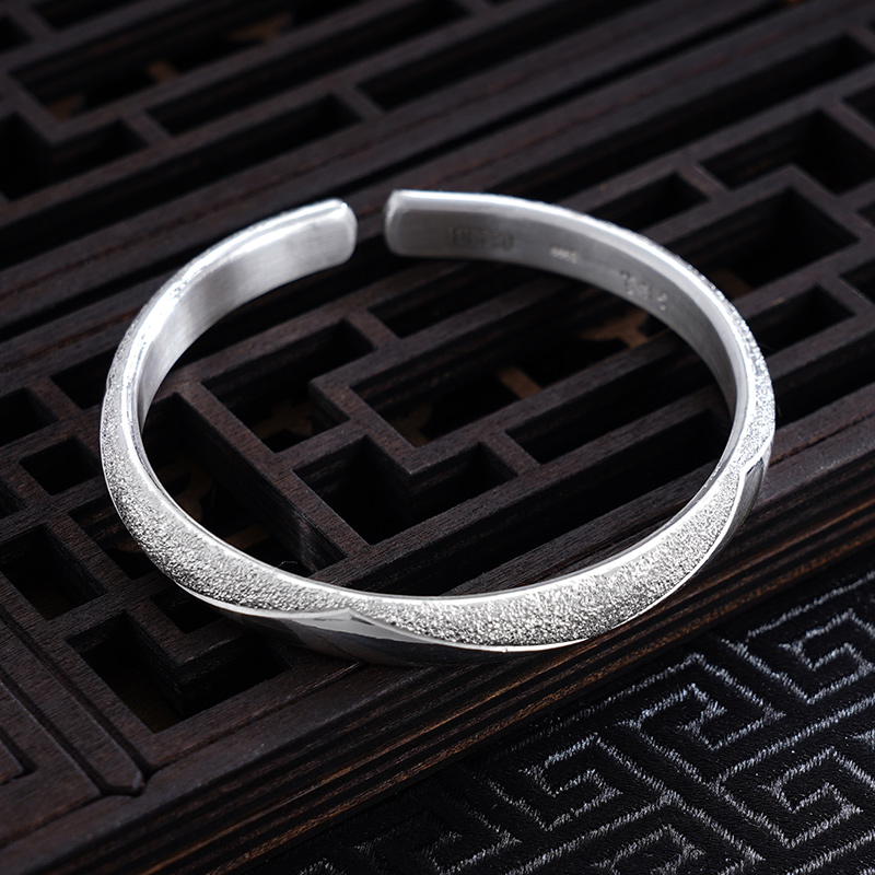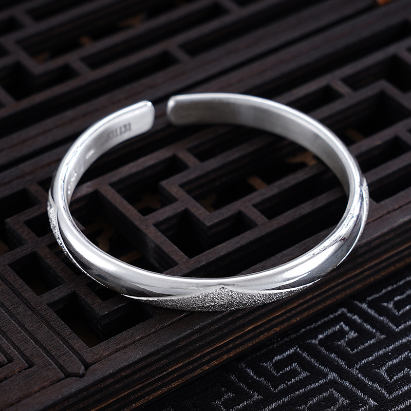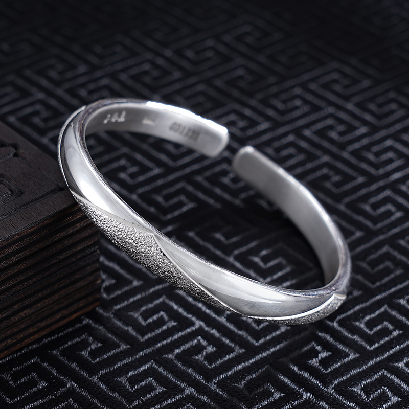 【寓意】:手镯以“银河”为设计灵感,镯面采用抛光与钉砂工艺,塑造两种不同质感的光芒,犹如星辰汇聚成河,在腕间缓缓流淌。
